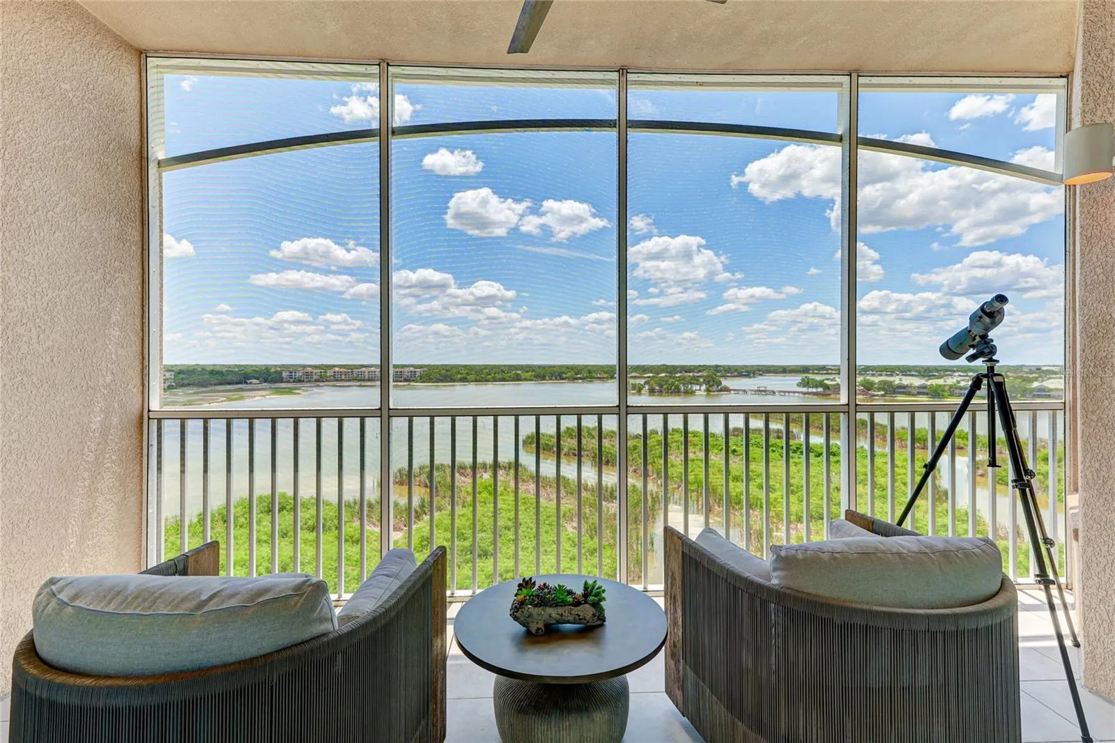 This VERY PRIVATE RARELY AVAILABLE TOP floor stunning 2 bedroom and den/office condo on the 7th floor with 10+ mile views is located in the unique, very private Waterfront community in the heart of downtown Lakewood Ranch. Enter this private gated community and drive under the building to your private parking spot and your private locker then take the elevator to the top floor to the residence. Once you open the front door you will immediately experience the outstanding design of this home. You will also notice the open floor plan and many high quality features. The beautiful owners suite presents awe-inspiring water and estuary views to awaken you. Step onto your spacious lanai from the owners suite or the family room and enjoy the southwest Florida wildlife hovering and meandering throughout Lake Uhlein and the Legacy Golf Course! The owners recently completed a $30,000 laundry renovation including a wine cooler and adding additional storage space. Amenities include a beautiful resort-style heated pool right on the lake, spa, fire pit, grilling stations, well equipped fitness center, beautiful clubhouse with catering style kitchen and expansive outdoor entertaining areas with kayak storage racks with lake access. Walk a few minutes to Lakewood Ranch Main Street that has a cinema, miniature golf, eclectic shopping, multiple restaurants and an abundant amount of entertainment await! Feel secure as the condo is equipped with impact windows and slider and built in ceiling sprinkler system. Excellent location with a short drive to the white sand beaches of Lido Key and Anna Maria Island. Easy 5 minute drive to The UTC mall, and no highways to downtown Bradenton or Sarasota or hop on I-75 for quick access to St. Pete and Tampa. PLEASE CLICK ON THE LIVE VIDEO TOUR AND THE 3D TOUR THAT IS ATTACHED.