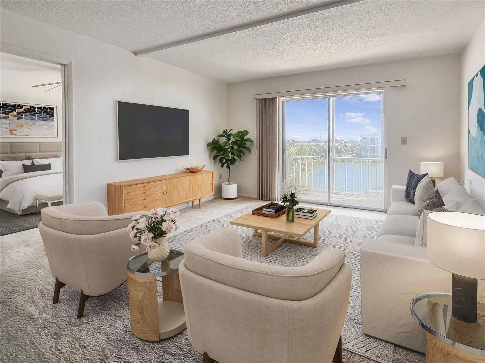 One or more photo(s) has been virtually staged. BEAUTIFUL WATER VIEWS! 4TH FLOOR UNIT! FULLY FURNISHED! LOWEST HOA FEES IN THIS BUILDING + BEST LOCATION IN THE COMMUNITY! Welcome to Bayshore On The Lake, a well established 55+ community just a few miles from our renowned Gulf beaches. One of the best buildings in this community… well managed and well located. This spacious, bright, and open condo offers 2 bedrooms and 2 bathrooms with the option to include the furniture for a seamless move-in process. Gently used for only a couple of months each year, this unit is primed and ready for a new owner and has not been used as a rental by the current owner. Separate yourself from the rest with an unbeatable lake view, perfect for morning coffee or evening cocktails. The rear screened porch is large and spans the width of the unit. Also just steps away from the community pool and clubhouse for added convenience. The low HOA fees even come w/ cable and internet included! Local dining, shops, and destinations are just a stones throw away. Surrounded by everything but still feels as if you’re a world away. Perfect unit for a variety of lifestyles… full-time, part-time, or future investment. Elevator access in the building makes reaching your new 4th floor unit a breeze. Come see this premium unit and find out why this community is highly desired. Schedule your showing today!