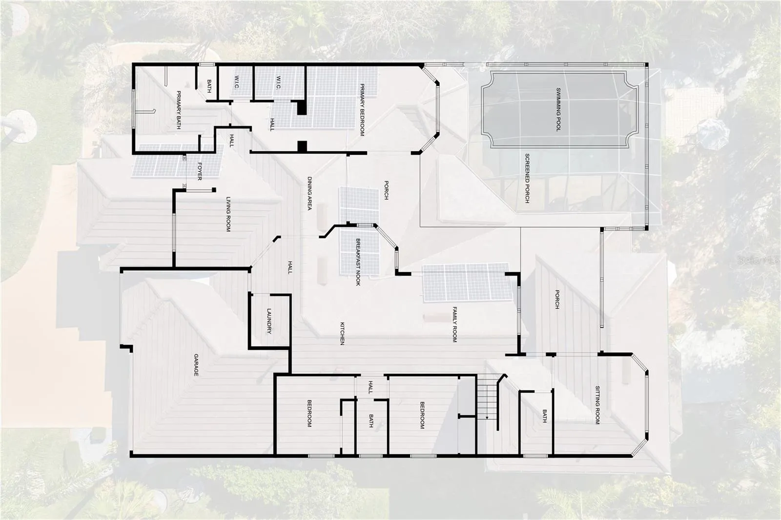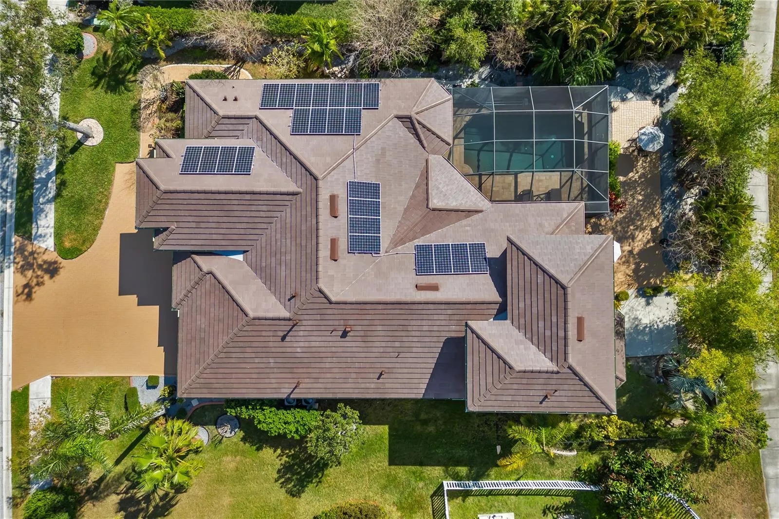 Greyhawk Landing community, executive home spacious floor plan, room for everyone, 4 bedroom, 3.5 bath with heated oversized lap pool, NEW ROOF, NEW EXTERIOR PAINT, NEW WATER SOFTENER, SOLAR PANELS, GUTTERS and fully fenced backyard tropical garden area. This gorgeous quality-built multigenerational estate is a standout opportunity in the gated community of Greyhawk Landing, offering resort-style amenities for only $75/year, with major upgrades for peace of mind and energy efficiency. Timeless architectural details include graceful archways, tray and vaulted ceilings, crown molding, and elegant finishes throughout. The primary suite is a private retreat with a spa-style bath featuring a soaking tub, oversized shower, dual vanities, and linen storage. Three additional bedrooms share two full baths. Upstairs, a versatile bonus room with half bath and new mini bar provides flexible living space for a guest suite, office, or media room. Triple pocket sliders open to a resort-style screened pool, surrounded by lush landscaping, paver decking, and stone accents perfect for year-round entertainment. Residents of Greyhawk Landing enjoy exceptional amenities including two resort-style pools, fitness center and gym, tennis, pickleball, and basketball courts, soccer and baseball fields, fishing pier, nature trails, scenic lakes, and frequent wildlife sightings. Centrally located near Lakewood Ranch, Sarasota, and Florida’s Gulf Coast beaches, top A-rated schools, golf, boating, medical facilities and entertainment. This home offers more than just a place to live, it delivers a complete Florida lifestyle in paradise. This is a rare opportunity to own one of Greyhawk Landing’s most versatile and well-appointed homes, offering luxury, flexibility and exceptional value.