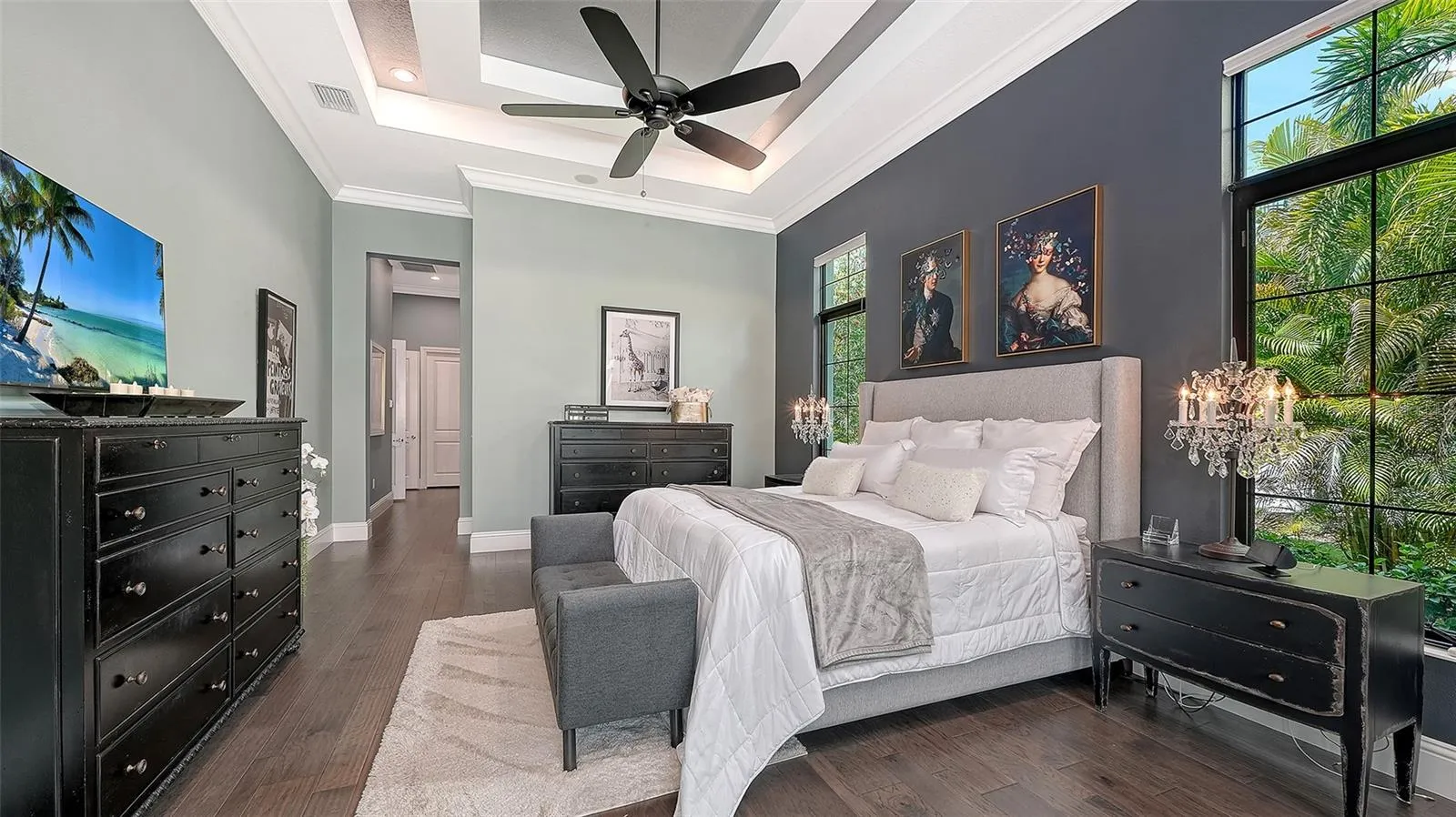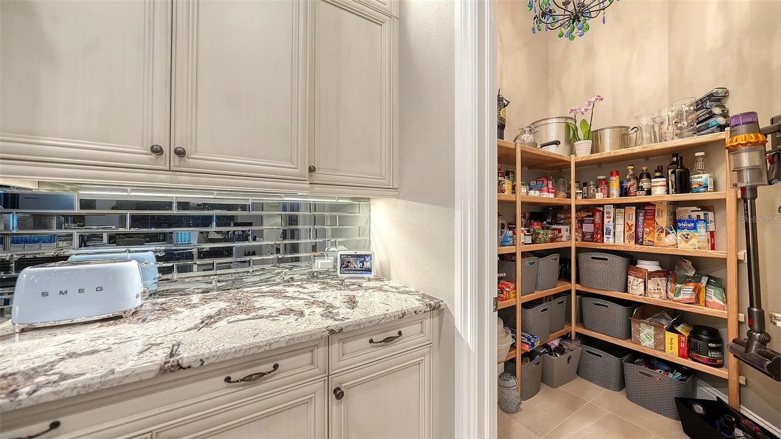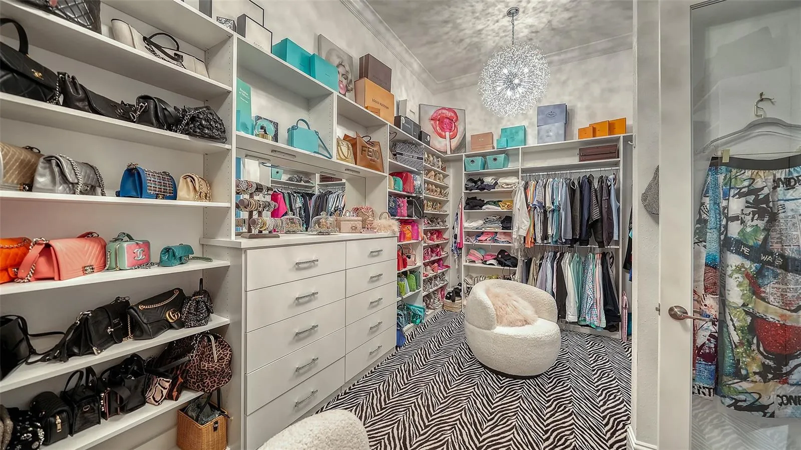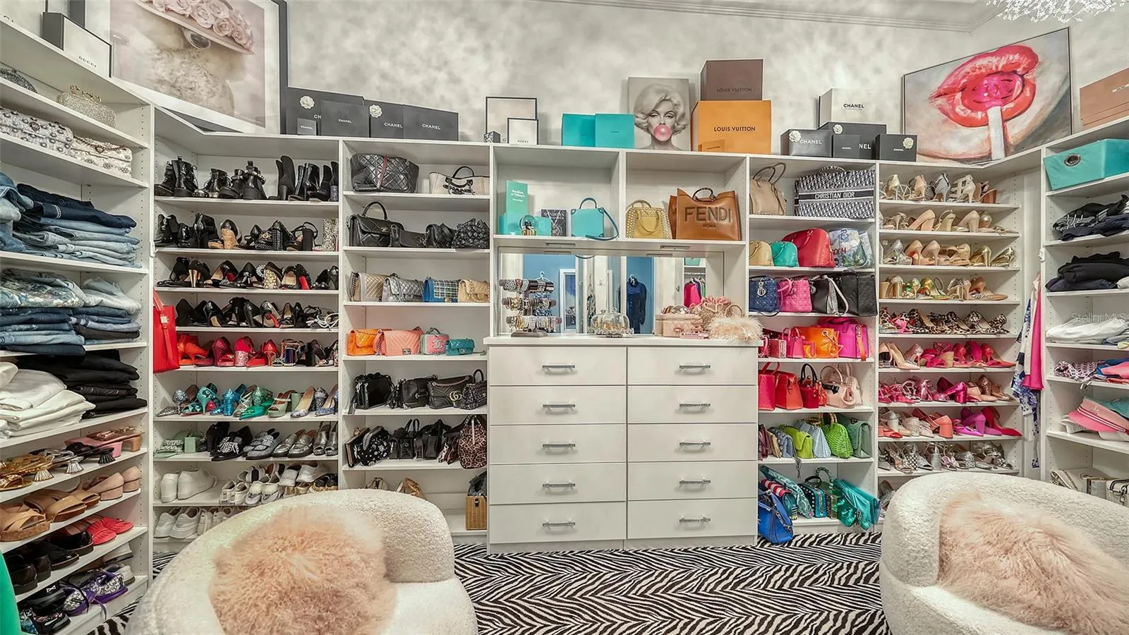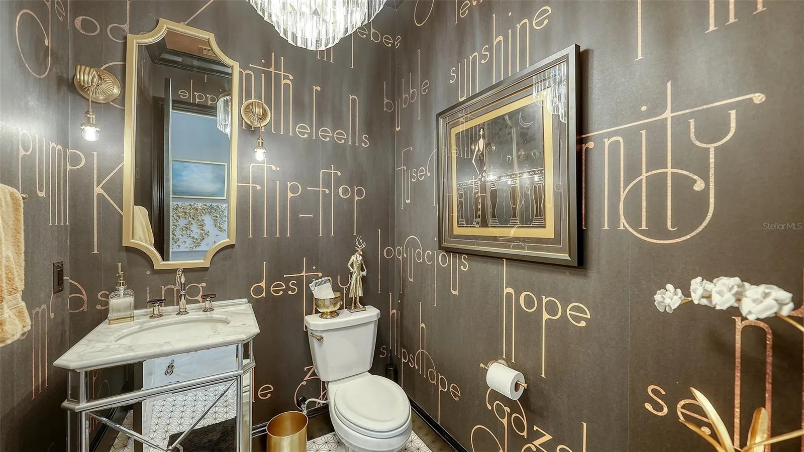 Interiors are defined by dramatic architectural ceiling treatments, custom millwork, designer chandeliers, rich crown molding, recessed lighting, and thoughtfully designed window treatments. The entire residence has been freshly repainted inside and out, presenting a pristine and flawless offering. The gourmet kitchen is a showpiece, featuring illuminated upper cabinetry, a striking smoked mirror glass backsplash, custom range hood, seamless one-piece granite island, updated sink and faucet, refined hardware, under-cabinet and pendant lighting, and newly refinished cabinetry. Living and entertaining spaces are enriched with custom crafted built-ins, tailored lighting, plantation shutters in the dining room, plush new carpeting in guest suites, and two private executive offices with custom cabinetry and French doors. The versatile bonus room offers elegant flexibility as a media room or additional guest suite. The sumptuous primary suite includes a reimagined, expanded couture closet with custom cabinetry, new carpeting, glass entry doors, and designer lighting. The spa-inspired primary bath boasts new quartz countertops, dual sinks, upgraded fixtures, illuminated custom mirrors, and artfully updated tile. A dramatic, designer powder room provides a striking statement of luxury. Notable enhancements include a whole-house water softener and filtration system, a whole-house Kohler generator and an epoxy floor coated 4-car garage!