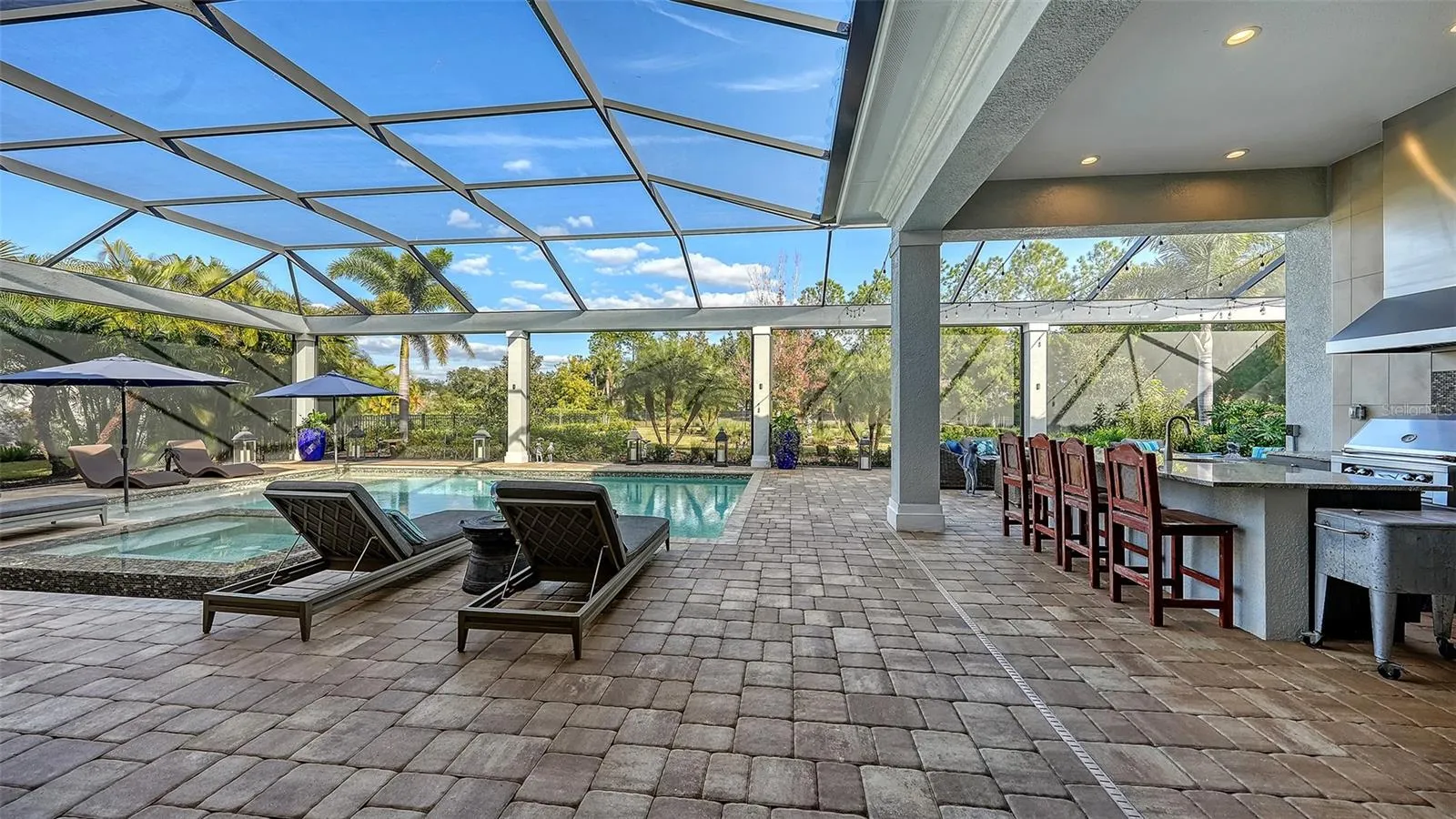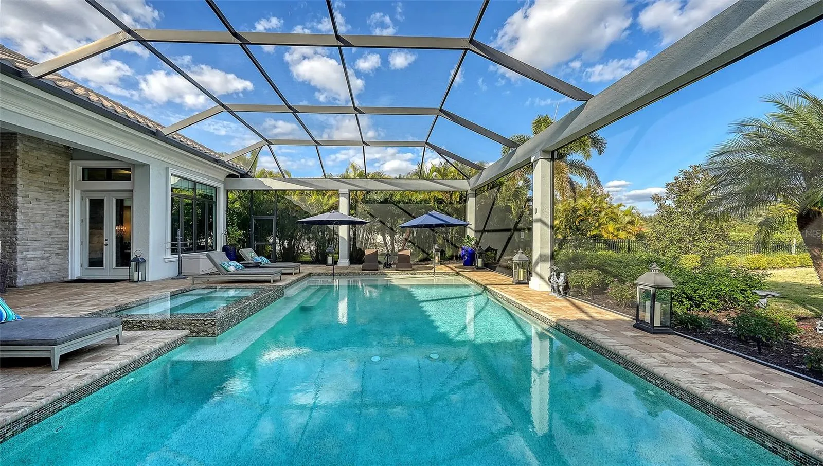 - In Ground, Lighting, Salt Water, Screen Enclosure, Heated, Tile, Self Cleaning, Fiber Optic Lighting
