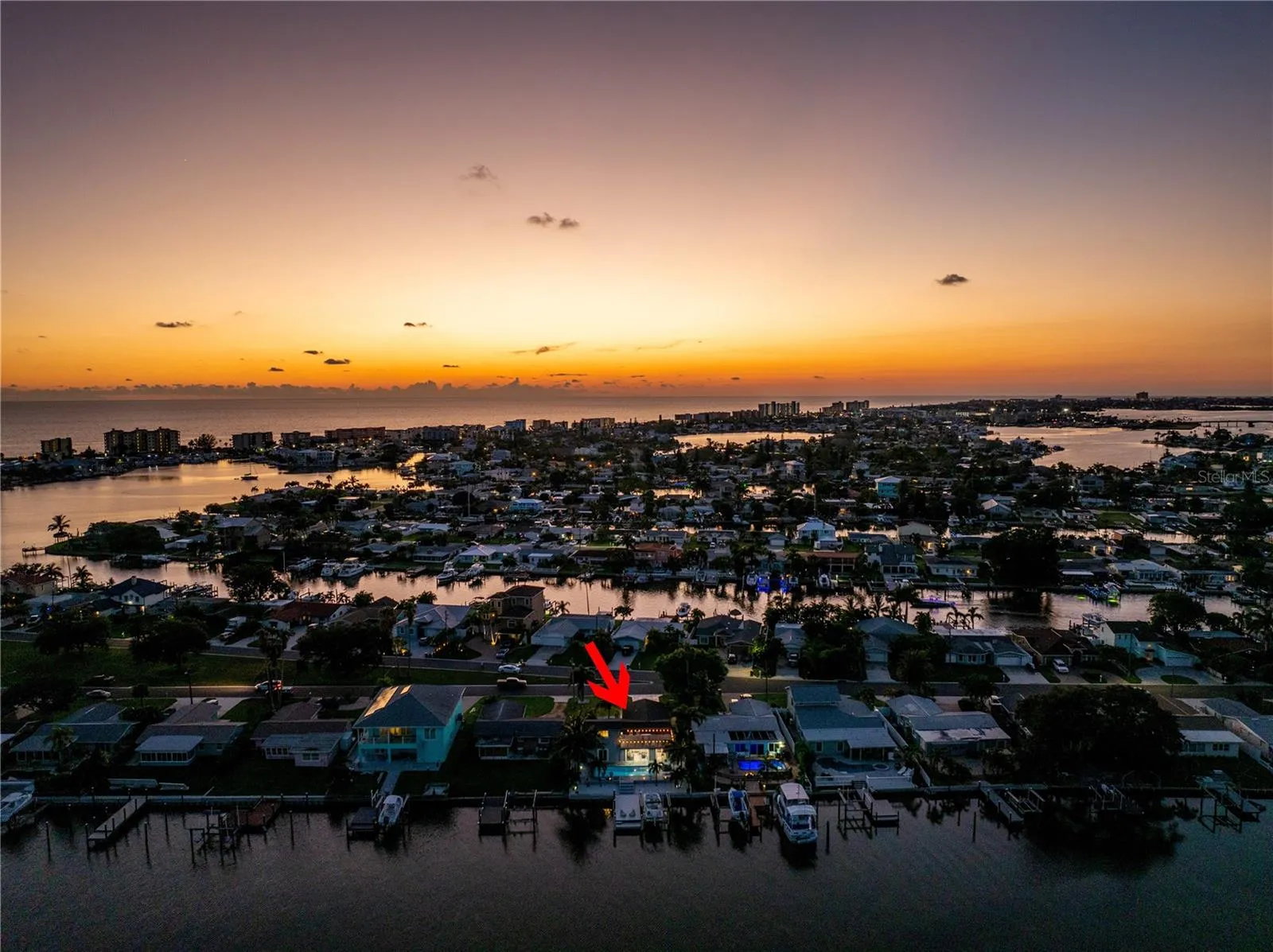 Located in desirable Crystal Island neighborhood of Madeira Beach where driving to brunch or dinner by golf cart in your flip flops is just a NORMAL day on the Island. This home has sunrises in the backyard and sunsets in the front that you can view from the upper sunset deck.