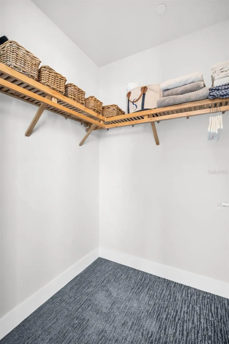 Designed to extend living beyond the interior, two private balconies are accessible from the living room, primary suite, and second bedroom, offering front-row views of Tampa Bay by day and the city’s illuminated skyline by night. The primary suite is a private retreat featuring dual walk-in closets and a spa-level bath with an oversized soaking tub. A generously sized guest suite with its own walk-in closet ensures comfort and privacy, while the dedicated den adds flexibility for a home office or media space.