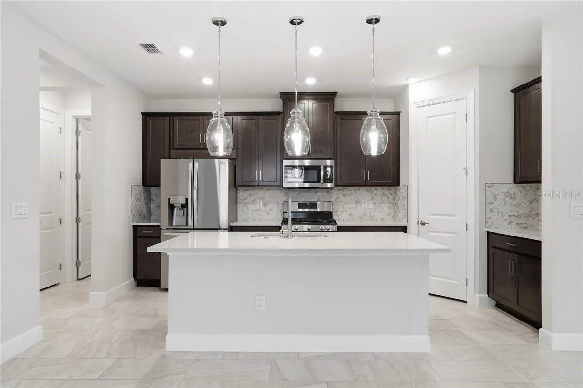 One or more photo(s) has been virtually staged. Welcome to this wonderful home located in the highly desirable community of the Esplanade at Artisan Lakes, in north Manatee County. Built in 2024, the Matera Model (3 bedrooms and 2.5 bathrooms) features a generous open floor plan in the living area. As you walk through the front door, you will see a beautifully designed kitchen at the heart of this home with quartz countertops, a gorgeous backsplash and a walk-in pantry. The floors are ceramic tile throughout the home giving it a modern clean design. There is a whole house water filtration system, a whole-house power generator and gutters around the home. The sliding glass doors open to the enlarged screened-in Lanai which is perfect for entertaining! The Owner’s suite offers a unique feature: a convenient access to the laundry room through the walk-in closet. The en-suite bathroom has dual vanities and a spacious walk-in shower. The two additional bedrooms are in the front of the home adjacent to a full bath with a tub/shower. The guest bathroom is near the entryway, giving these two bedrooms their own bathroom. There are ceiling fans in each room, including the Lanai. The two car garage has an epoxy floor with room for storage. One of the nicest feature of this home is the location! There is a tree-lined green space across the street, making this home private, peaceful and pretty!