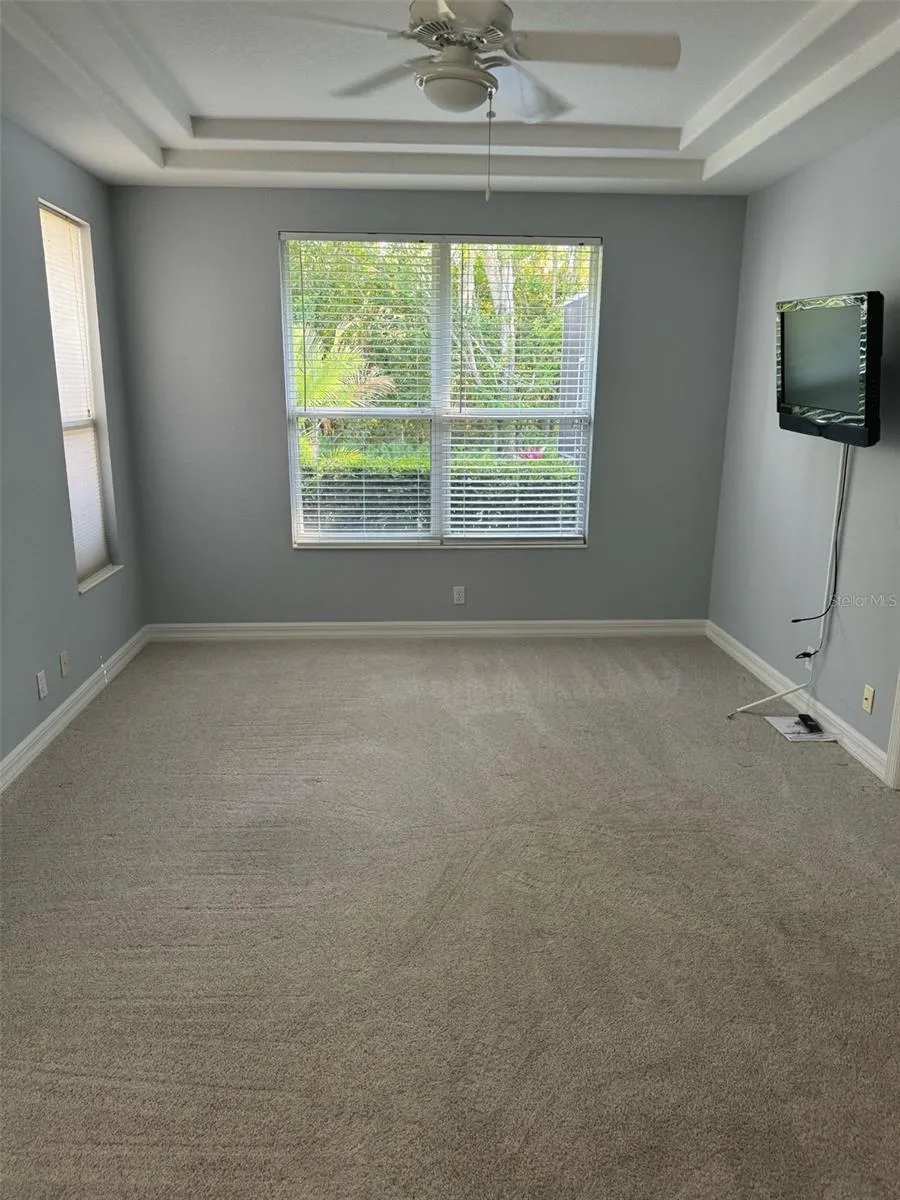 - Ceiling Fans(s), Walk-In Closet(s), Primary Bedroom Main Floor, Split Bedroom, Window Treatments, Stone Counters, Solid Wood Cabinets, Solid Surface Counters, Tray Ceiling(s)
