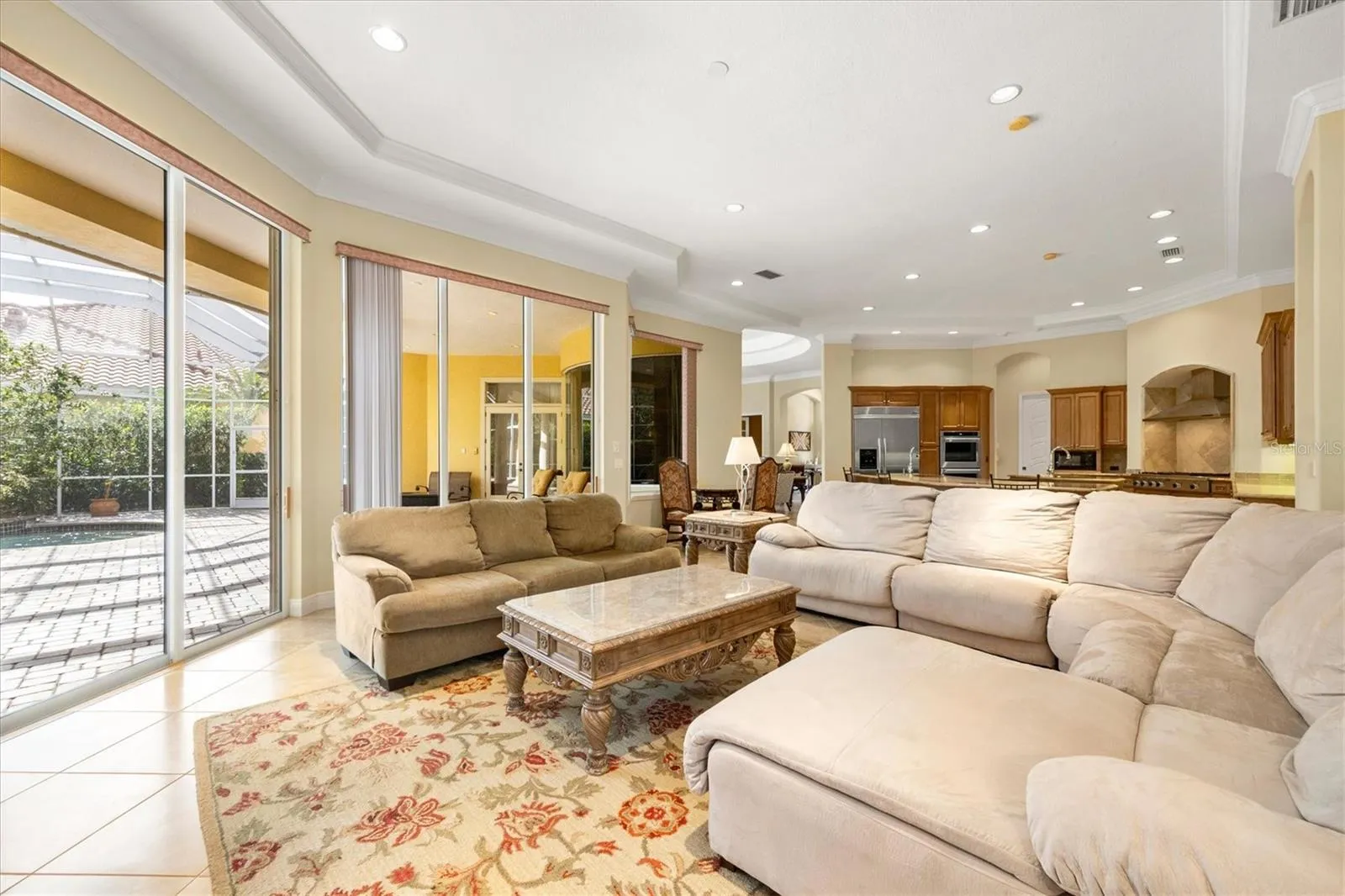 Throughout the home, crown molding, recessed lighting, tile flooring, and cohesive Mediterranean details create a warm, polished, and luxurious living experience—perfect for both everyday comfort and elegant entertaining.