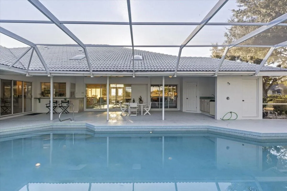 If you’ve been waiting for a home with presence — the kind you just don’t see anymore — this is it. Tucked inside River Wilderness Golf & Country Club, this classic estate sits on over half an acre (.51) with sweeping golf course and pond views that immediately capture your attention the moment you walk through the front door. The setting alone is special — wide open skies, mature oaks, and that peaceful feeling you only get in an established community. This home was built for entertaining in a big way. The 40-foot-long pool is a showstopper. Three sets of fully pocketing sliders (family room, living room, and primary suite) open completely, blending indoor and outdoor living in that true Florida style. Picture holidays, dinner parties, and long weekends by the pool with the golf course as your backdrop. The layout is generous and thoughtful: *Dedicated office with private access to the owner’s suite *Two large guest bedrooms with a shared full bath *Formal living and dining rooms for a touch of elegance *An oversized primary bedroom with a huge walk-in closet and spacious bath featuring a soaking tub, dual vanities and a private water closet *A big family room with built-ins and another wall of sliders *Kitchen with breakfast nook, pass-through window to the pool, and wet bar Storage? There’s plenty — multiple interior closets, an entire wall of closets in the oversized garage, and attic flooring for even more space. And yes — the golf cart is included. The curb appeal is undeniable with a circular driveway and mature landscaping that gives the home that grand, established feel you just can’t recreate in newer neighborhoods. River Wilderness is known for its winding, tree-lined streets, neighbors out walking dogs, biking, and enjoying the outdoors. Club membership is optional, and amenities include golf, pickleball, tennis, fitness center, pool, and social events. There’s even a community boat ramp with direct access to the Manatee River, plus boat and RV storage. Location is a major bonus — positioned between St. Pete and Sarasota with two airports about 45 minutes away, close to hospitals, and just minutes from Ft. Hamer Park, the new bridge into Lakewood Ranch, dining, and shopping. This isn’t a cookie-cutter home. It’s a property with scale, character, and the kind of lot that’s getting harder and harder to find. With the right updates, it could be absolutely spectacular. If you’ve been searching for space, views, and long-term potential in River Wilderness — this one deserves a look. No pickup trucks in driveway overnight in RW. Buyer to verify sf.