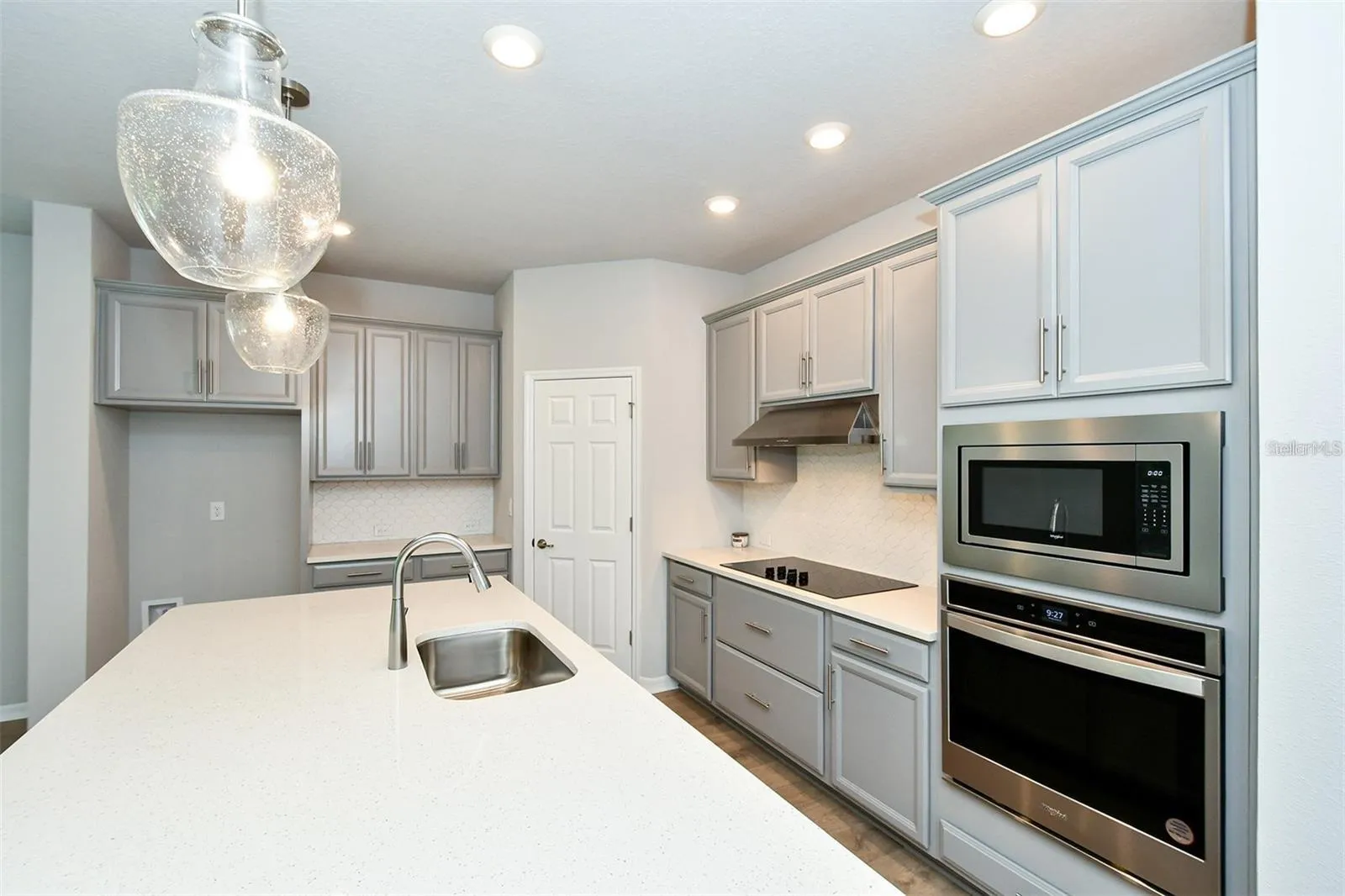 Gourmet Kitchen has quartz counters, cooktop with hood, microwave and built-in oven. The en-suite master bath has dual sinks, a walk-in shower and walk-in closet. 2 car garage.