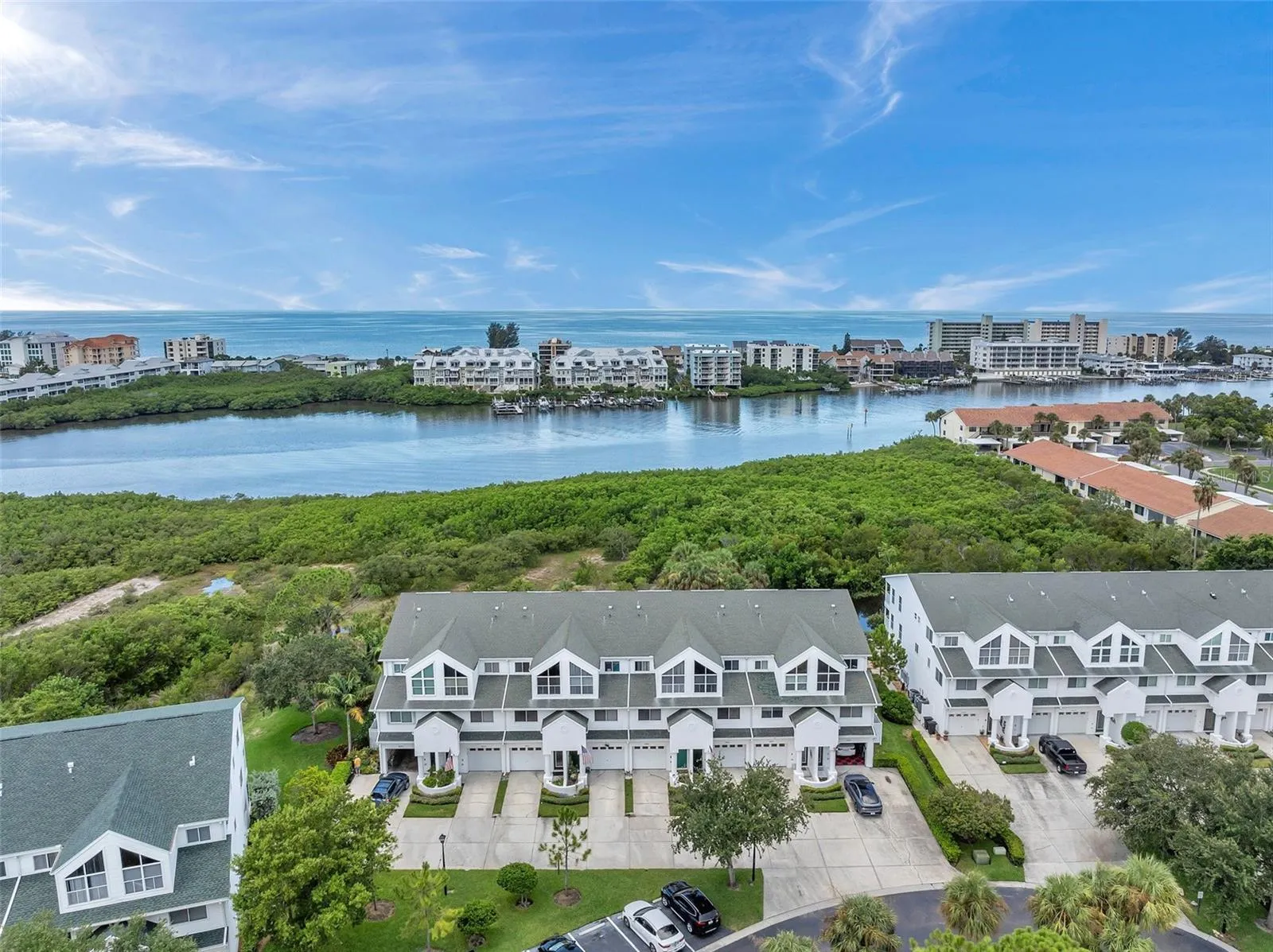 DROP DEAD GORGEOUS!!! Here’s an amazing opportunity to own an exquisitely updated West-Facing waterfront home. This townhouse offers carefree waterfront living for even the biggest families. With over 2,100 sf, you have plenty of space and lots of separation. Screened decks/patios on all levels with west facing views all the way to the beaches! The main level features elegant wide-plank Brazilian teak floors with matte finish, very durable, scratch resistant and easy to clean. The kitchen area is a stunner! It won an industry award (NARI) for ‘Kitchen of the Year’. The kitchen has been opened up and turned into a show piece with quarter sawn mahogany premium cabinets, with organization by DeWils and black leathered granite. The banquette has storage drawers and display surround with LED lighting on dimmers. The GE Platinum appliance package is also top of the line. The kitchen opens up into the living room / dining area with WIDE OPEN VIEWS OF THE INTRACOASTAL!! One bedroom and full bath with spa-like finishes are also on the main floor. The 3rd floor has 2 bedrooms and 2 beautifully updated full baths. Enjoy wide-open views of the water from your master bedroom or deck off the primary. Laundry closet off the 3rd floor bedrooms are equipped with high capacity washer and dryer. Bedrooms have been updated with professional grade closet organization systems. All bathrooms have custom made vanities with premium stone. The bottom floor has a PERFECT In-Law setup with direct access through garage or rear slider. With a refrigerator, microwave ,sink and it’s own new A/C unit. The full bath has a Jacuzzi with LED light therapy and shower. This area leads into a step down oversized 1 car garage, equipped with a generator and tons of storage throughout. From the bottom floor, you’re a short walk away from a series of docks that are ideal for kayaking, paddleboarding, or pulling your boat up for the weekend. Tara Cay North enjoys a low $404/month HOA which includes a HEATED community pool, community docks water, sewer, trash and cable/wireless internet. Tara Cay is a pet friendly community, HOA allows for 2 dogs (any size) and has lots of green space for walking. NO flood damage from hurricanes. This one is a MUST SEE!