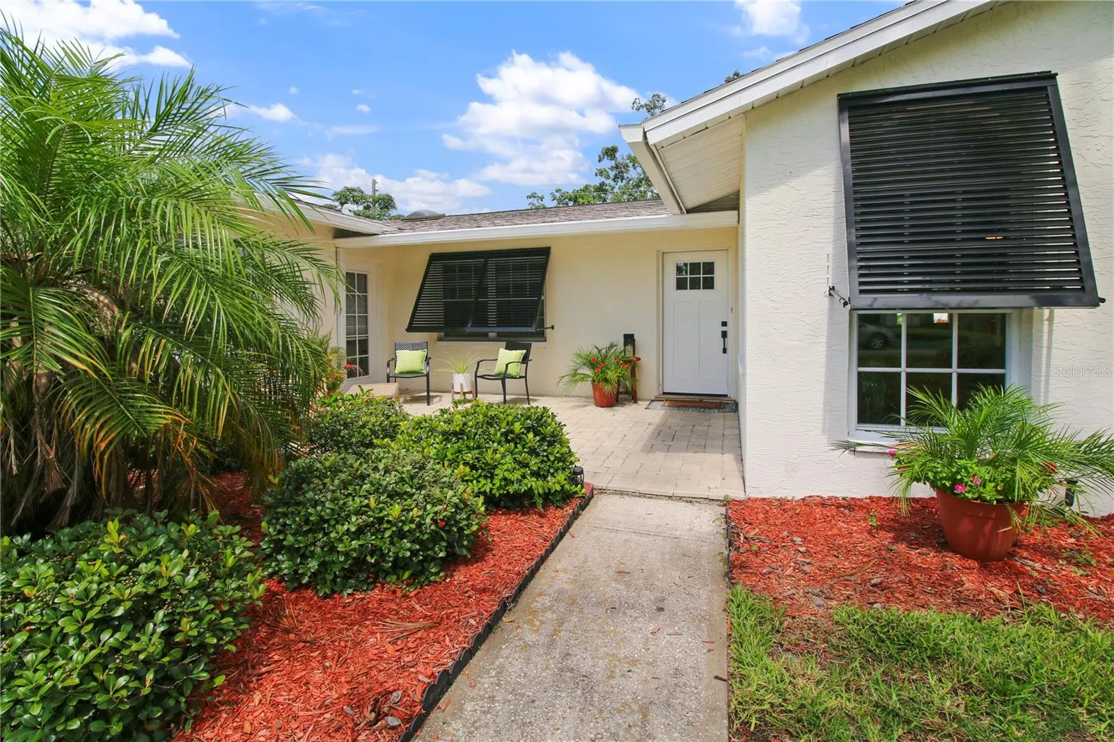 Under contract-accepting backup offers. Improved Price! Beautiful 4/3 Home – Spacious and flexible – centrally located – 1 mile or less walk or ride to beaches and schools and 3 miles to Seminole City Center! X Zone- High and Dry! Welcoming Front Patio! Updated Open Kitchen with Great Cabinet Space and Coffee Bar. Light and Bright Living Area. Huge Great Room with Wood Burning Fireplace. 4 Large Bedrooms. 3 Full and Updated Bathrooms. Double Door entry to Large Primary with EnSuite Bath and Custom Walk-in Closet. Plus Access to Patio and Landscaped Backyard. 2 Bedrooms share an updated Hall Bathroom with Jacuzzi Tub. 1 Large Bedroom and Full Bath off sep hall from Kitchen could be inlaw suite, guest apartment, teen suite, etc as it has separate outside entrance access. Additional smaller room suitable for Office, Nursery, Playroom off the Great Room. Features: Newer Roof (2021). Updated Electric Panel. Newer Water Softener (2 yrs). Backyard with updated palm and shells landscaping. Bahamian Storm Shutters grace the Front of the Home for Safety and Beauty. Oversized 2 car garage with closet storage area. Inside Laundry Room with Washer and Dryer and access to Garage and Side Yard.