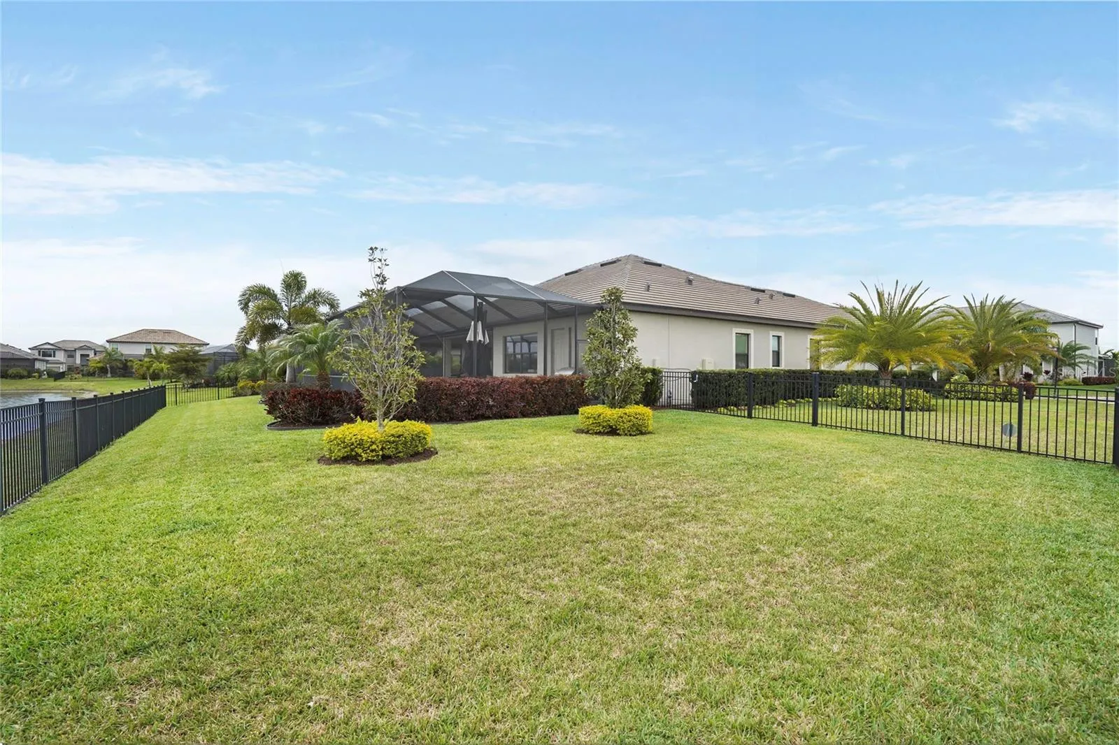 Built in 2022, this stunning home has already been enhanced with numerous custom upgrades that set it apart. Upon entry, you’re greeted by elegant double front doors and a dramatic 12-foot foyer, leading into the impressive open-concept floor plan that makes the Sunset model so desirable. The spacious great room features a tray ceiling with custom crown molding and a striking custom electric fireplace feature wall, creating the perfect space to relax or entertain. The gourmet kitchen is equally impressive, highlighted by a massive quartz island, additional cabinetry, under-cabinet lighting, and a high-end Miele dishwasher. Elegant upgraded lighting and designer ceiling fans throughout the home add both style and sophistication. Some features simply can’t be duplicated—and the spectacular sunset and sparkling water views from the oversized screened-in lanai with pool and spa are truly priceless. With western exposure and unobstructed 160-degree water views, this outdoor space is sure to become a favorite gathering place. The professionally landscaped, fenced corner lot is widely regarded as one of the premier home sites in the entire neighborhood. Pride of ownership is evident in every detail of this meticulously maintained home. Additional highlights include: Porcelain tile throughout, Custom closet shelving, Upgraded cased moldings. 10-foot ceilings throughout the main living areas, Motorized electric roller shades, Private primary suite featuring a luxurious steam shower with dual shower sprayers, SPF sun-control motorized shades on the lanai, 3-car garage with epoxy flooring, Professionally designed tropical landscaping and fenced yard, Outdoor Artisan kitchen grill. Located within Lakewood Ranch, the nation’s #1 multi-generational master-planned community, Lorraine Lakes offers an unmatched lifestyle. HOA benefits include lawn maintenance, irrigation, cable, internet, multiple gated entrances, common areas, and 24-hour guard-gated security. The community’s resort-style town center features incredible amenities including a full-service restaurant, tiki bar, arcade, fitness center, gym, saunas, pickleball, tennis, volleyball, resort pool, lap pool, and splash pad. Lorraine Lakes also offers beautiful walking paths and scenic lakes, including the main lake with a dock where fishing is permitted. Don’t delay, schedule your showing today!