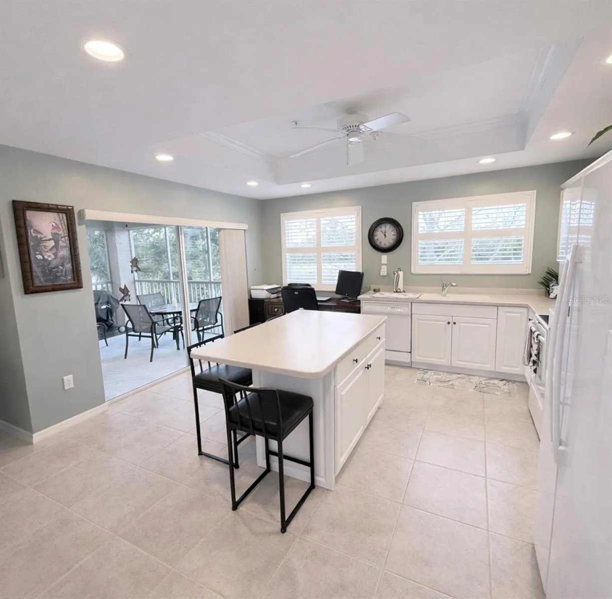 MOTIVATED SELLER AND BEST PRICE for this GORGEOUS 3 BEDROOM END UNIT with LAKE AND GOLF FRONT VIEWS, GARAGE, and BEAUTIFULLY TURNKEY FURNISHED interiors. This immaculate, move in ready home offers panoramic views of the pond and golf course along with full access to Tara Preserve amenities where you can pay and play golf with no required membership and optional memberships available. Golf carts are welcome and maintenance free living is included. This meticulous, bright, cheerful end unit shows like a model with 1,659 square feet, an open flowing floorplan, plantation shutters, tray ceilings, crown moldings, and new flooring in the bedrooms with no carpet. Enjoy a PRIVATE SCREENED 12 BY 12 LANAI with sweeping views of the grounds, lake, and golf course. The spacious eat in kitchen features white cabinets, two pantries including a walk in, a large island, Corian counters, stainless refrigerator, range, microwave, dishwasher, tray ceiling, windows overlooking the lake, and a double sliding glass door opening to the lanai for sunset evenings, morning coffee, entertaining, reading, or simply enjoying the peaceful setting while watching golfers in the distance. Grand Oaks residents enjoy their own community pool just steps away plus full access to Tara Preserve amenities including a resort style pool and spa, fitness center, tennis courts, clubhouse activities, and a pay as you play golf course with no mandatory membership. A welcoming entry foyer leads into an airy living and dining combination with sliding glass doors to the lanai and beautiful water views. Abundant windows with plantation shutters fill the home with natural light and create an inviting space for hosting family and friends. All bedrooms include ceiling fans, generous closets, and beautiful wood like laminate flooring. The primary suite offers a walk in and additional closet, double windows, and an en suite bath. The third bedroom with sliding pocket doors and two double closets is currently used as a bedroom but also makes an excellent office or flex space. The laundry room includes a laundry tub, washer and dryer, abundant cabinetry, and a storage closet. Enjoy a true Florida lifestyle with maintenance free living where fees include premium cable with HBO, high speed internet, water, and sewer. Centrally located near UTC Mall, dining, Lakewood Ranch Medical, SRQ and TPA airports, top rated Gulf beaches, Premier Sports Campus, Mote Aquarium, Polo, rowing regattas, the Farmers Market, and IMG Academy. This is the best of Sarasota, Bradenton, and Lakewood Ranch in one perfect location with ideal lock and leave convenience. Pictures cannot capture the stunning natural light, beauty, and flow of this condo and it shows even better in person. Reach out to schedule a showing and start living this fabulous lifestyle today.