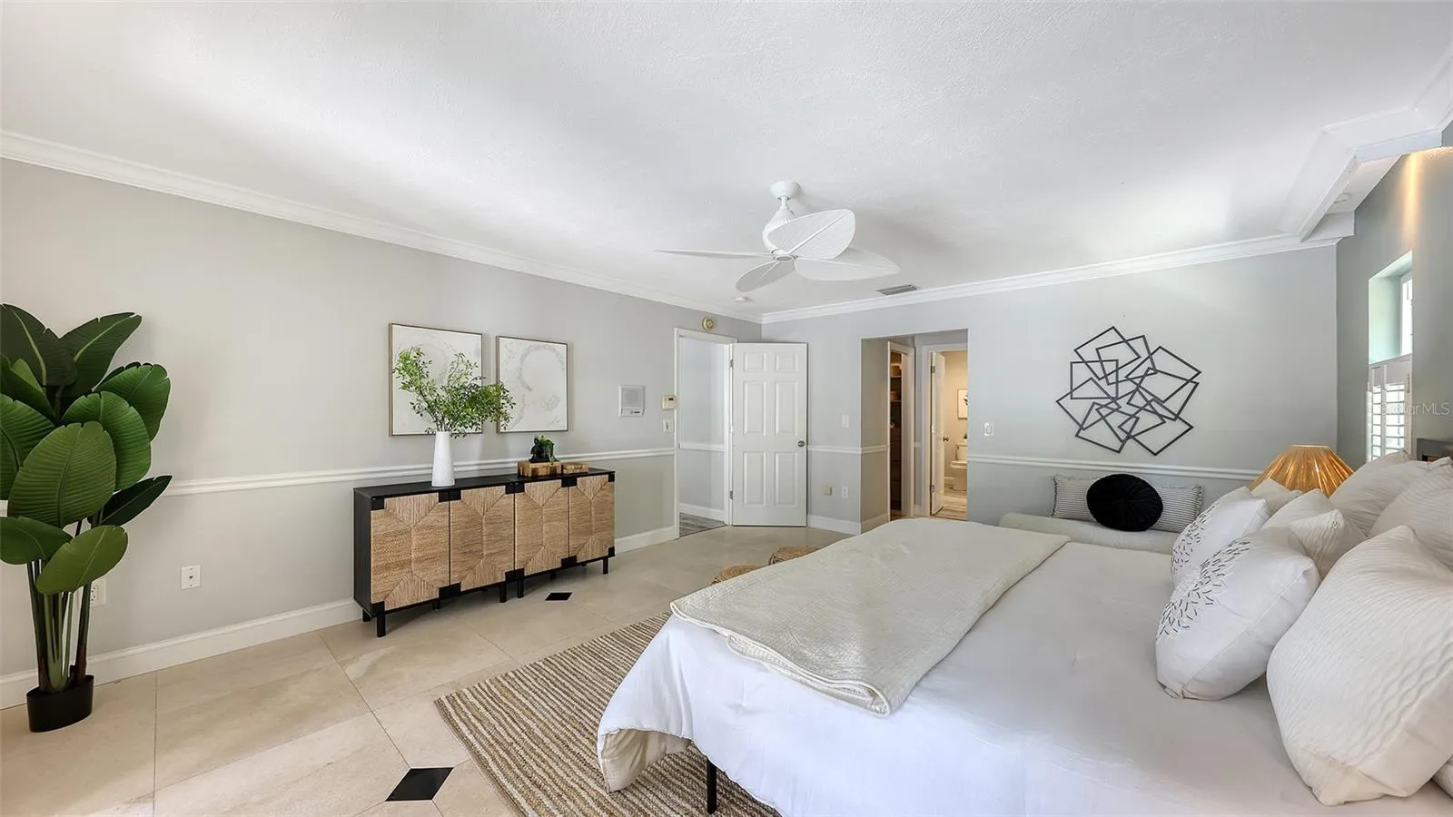 - Ceiling Fans(s), Crown Molding, Thermostat, Walk-In Closet(s), Kitchen/Family Room Combo, Primary Bedroom Main Floor, Split Bedroom, Window Treatments, Vaulted Ceiling(s), Stone Counters, Chair Rail