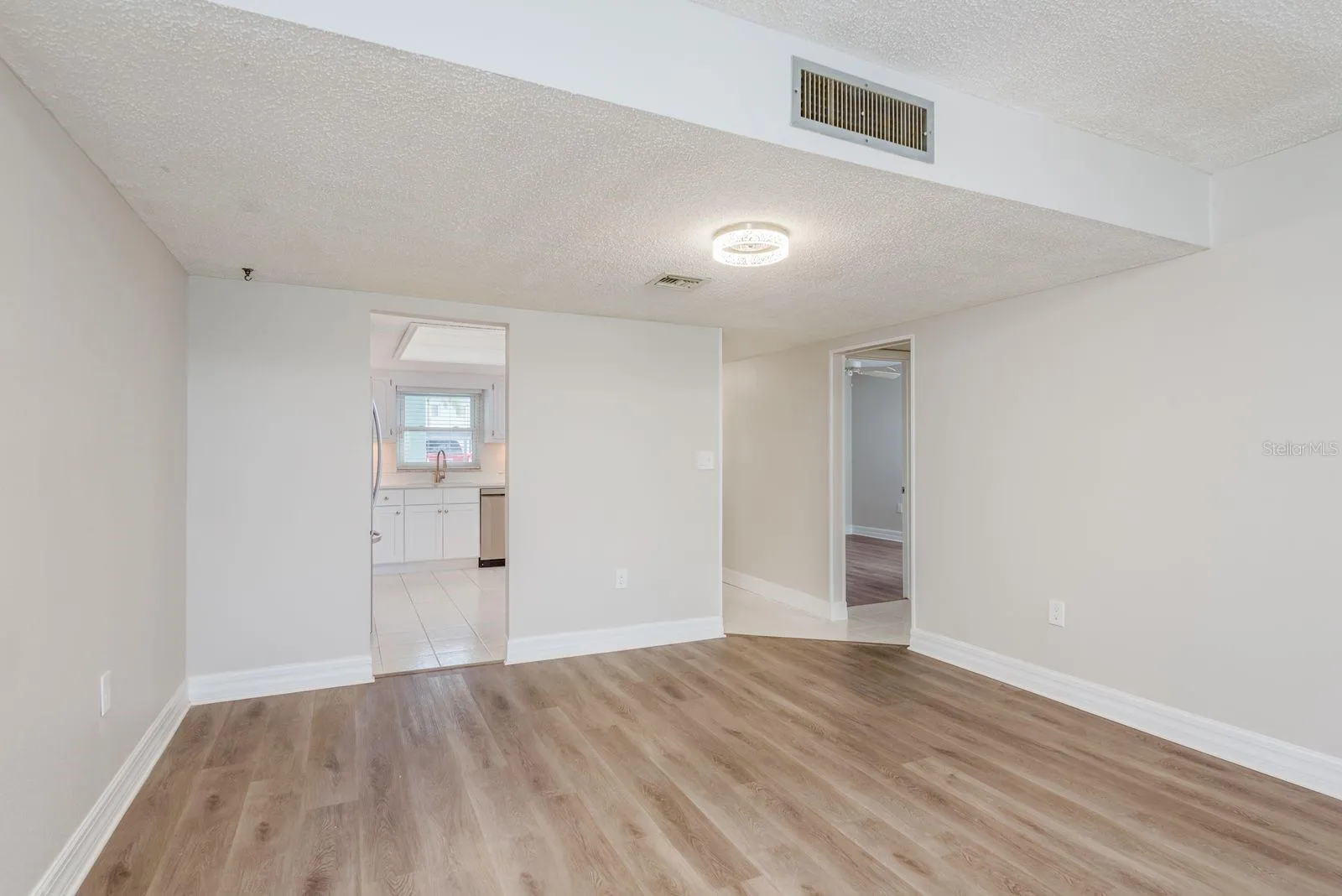 Inside, you’ll find a bright, open-concept kitchen, living, and dining area featuring elegant luxury vinyl and tile flooring throughout and abundant natural light. The modern kitchen flows seamlessly into the main living space, making it perfect for relaxing or entertaining while enjoying the comfort of low-maintenance waterfront living in Dunedin. The spacious two bedroom retreat offers a peaceful place to unwind after a day along the Gulf Coast, complete with generous closet space and additional storage, an increasingly rare feature in coastal condominiums.