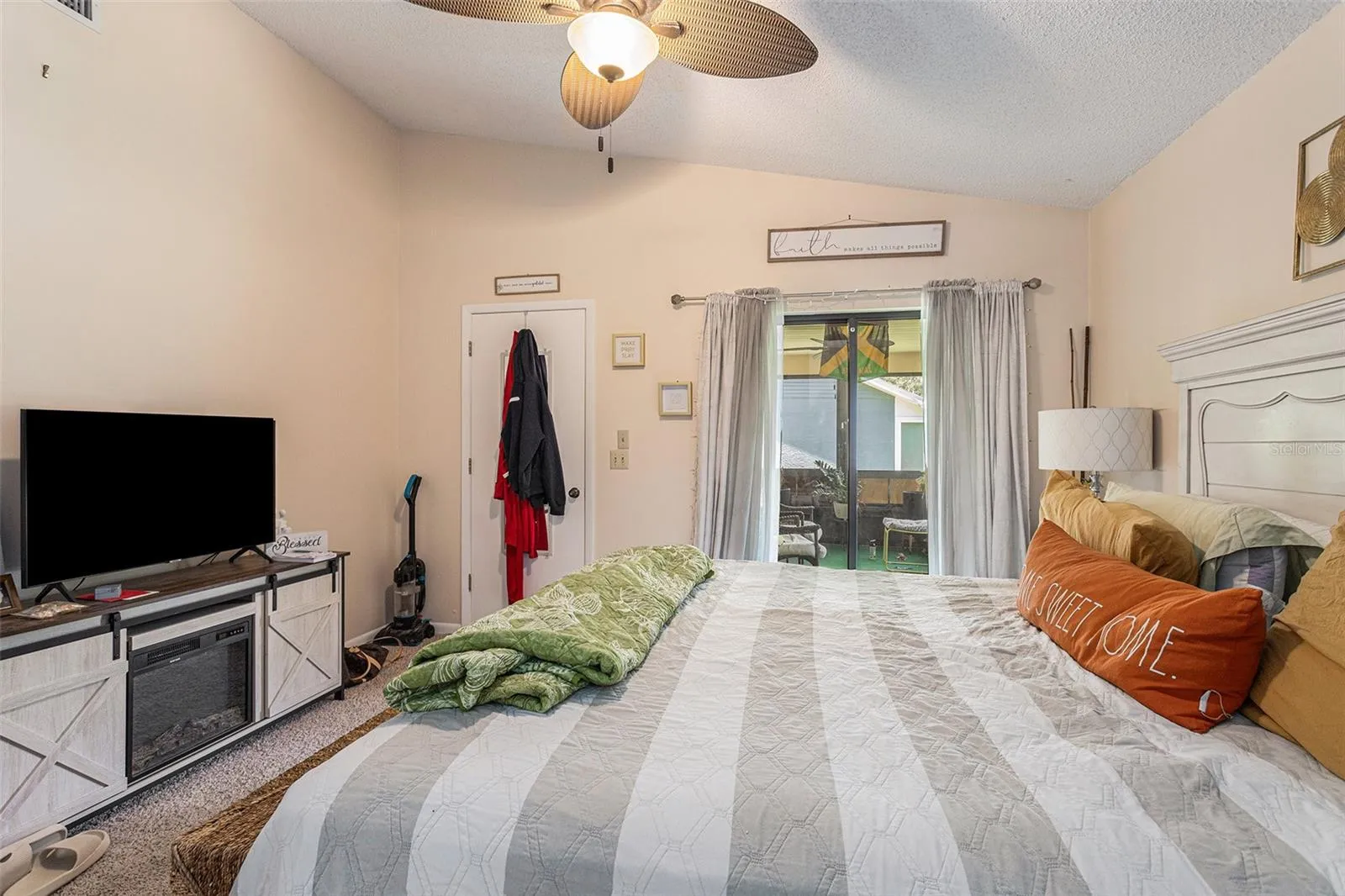 - Ceiling Fans(s), Thermostat, Walk-In Closet(s), Living Room/Dining Room Combo, Eat-in Kitchen, Primary Bedroom Main Floor, High Ceilings, Vaulted Ceiling(s)