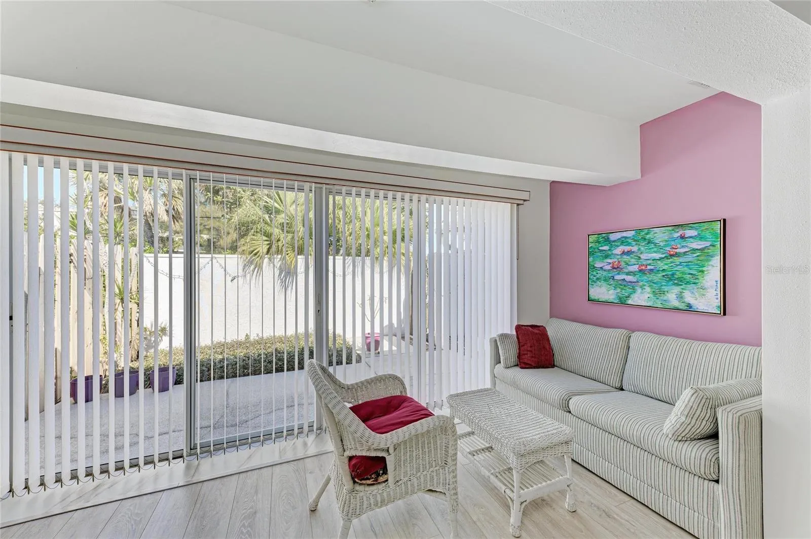 The home has been updated with light cupboards and Corian counters, stainless steel appliances in the kitchen, and vinyl plank flooring in the great room. The eat-in kitchen seamlessly opens into the dining and living room areas, which together create a spacious great room. This open-concept design extends into an inviting Florida Room, where the wall has been removed to further enhance the large, open floor plan. The property is being offered mostly FURNISHED (owner taking a few things). Tax records say 1390 SF which includes the extra room in MBR, but not the Florida Room which is now enclosed, so closer to 1600 SF heated I believe, This home is 10 feet above sea level (see elevation certificate). Has never flooded.