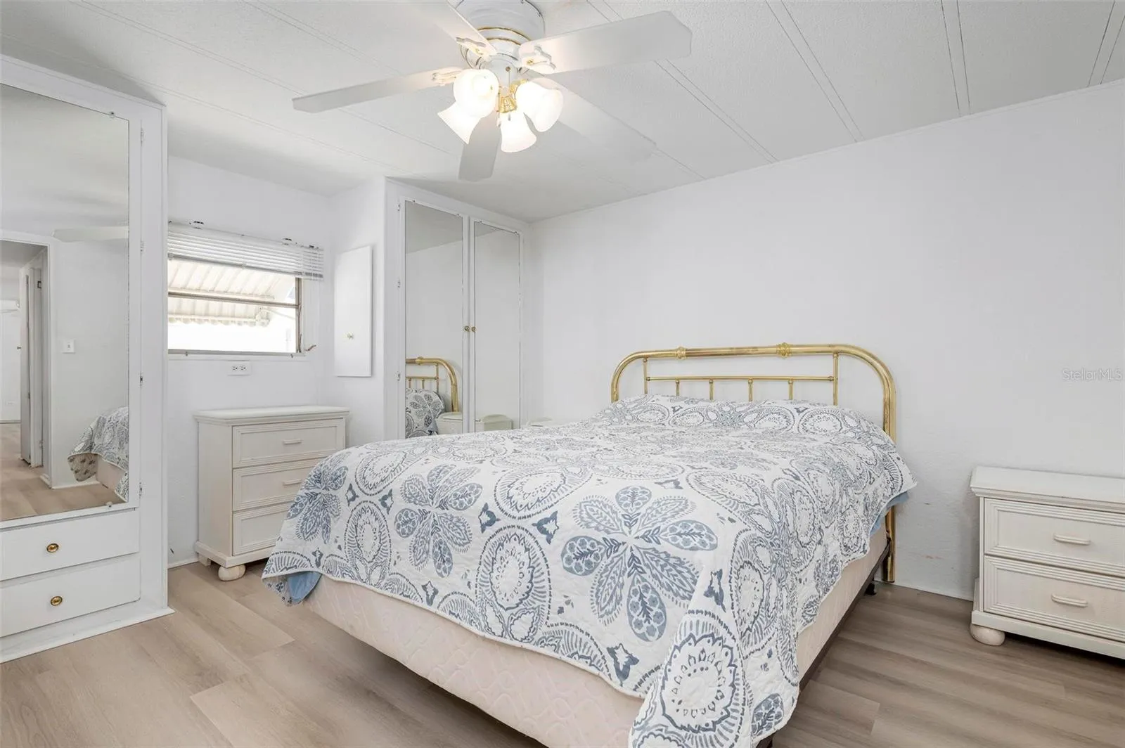 BEAUTIFUL 1 BEDROOM, 1 BATHROOM + BONUS ROOM HOME LOCATED IN THE HIGHLY SOUGHT AFTER 55+ BRADENTON TROPICAL PALMS COMMUNITY! This is the perfect little spot to call home. When you walk in you will love how the brand-new vinyl flooring, open floor plan and large widows that let in tons of natural light give this place a bright, open and clean feeling. The large living and dining space is perfect for host diner with your family and friends. Dining room set and stay or go as needed. The kitchen features plenty of cabinet space and white appliances. The bathroom has been updated with a walk-in shower. The bedroom has plenty of space for a king size bedroom set and comes with two built in closets with plenty of space to keep your belongings. The extra bonus space is not under a/c but is perfect for extra storage or work out area. Full size washer and dryer are located in the outside closet space. All of this is located about 8 miles from the beaches, 2.5 miles from downtown Bradenton River walk offering fine waterfront and rooftop dining options and the Pittsburgh Pirate Spring Training field is only a mile away. Bradenton Tropical Palms has amazing amenities! A 60 X 40 heated pool, professional fitness center, library/activity center, large meeting hall that seats 300 and has a huge stage! There are 22 shuffleboard courts with a community league that host tournaments, indoor air conditioned pickleball courts, a gazebo, memorial garden and beautifully landscaped walkways too. Come and check out this home & community today!
