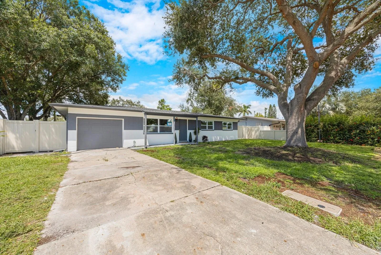 HURRICANE Resilient! Stay high and dry in this non-flood zone home that sustained no damage in the 2 recent major hurricanes! Beautifully renovated home located in St. Petersburg Florida! 4 Bedrooms, 2 Baths, 1-Car Garage & Large Fenced Backyard! Bright open floor plan home updated entirely throughout, with New Impact windows, Brand New Roof, New water heater, & New AC with New ductwork & New separate Mini Split for the back bedroom. Two-toned slow-close cabinetry, Large center Quartz Waterfall island with plenty of bar seating. Brand New trendy Samsung Bespoke appliances, the Glass fridge is completely customizable with multiple colors of glass inserts available at Home Depot or other appliance stores; Perfect for entertaining family and guests. New recessed lighting, all-new vinyl wood flooring, and gold accents throughout. The main Bathroom features tiled herringbone flooring & natural wood vanity. Spacious bedrooms with natural lighting and closets allow for plenty of storage. The primary bedroom features an en-suite bathroom tiled from top to bottom; Luxury tile, with a natural wood vanity & spacious curbless shower with gold glass accents. This home is located within the heart of St Petersburg 15 minutes from Madeira Beach and 15 minutes from Downtown St Pete! Local shopping nearby includes Sprouts Market & Tyrone Mall; Parks nearby include JW Cate Rec Center & James P. Ernst Park.