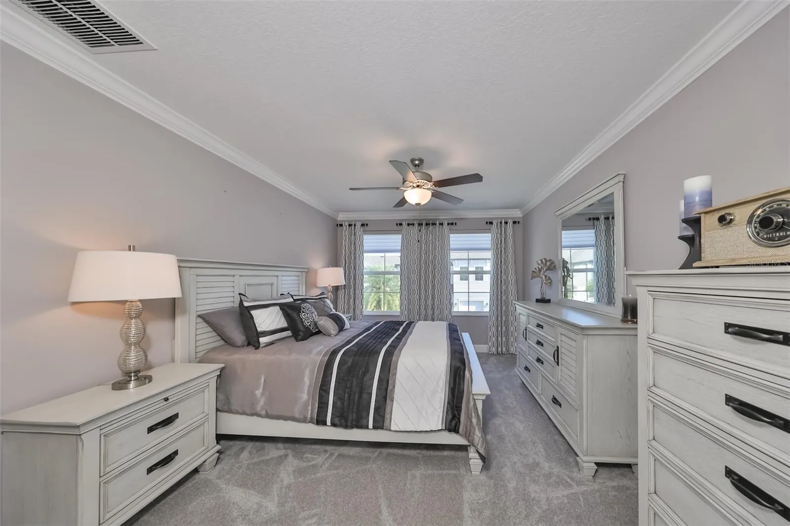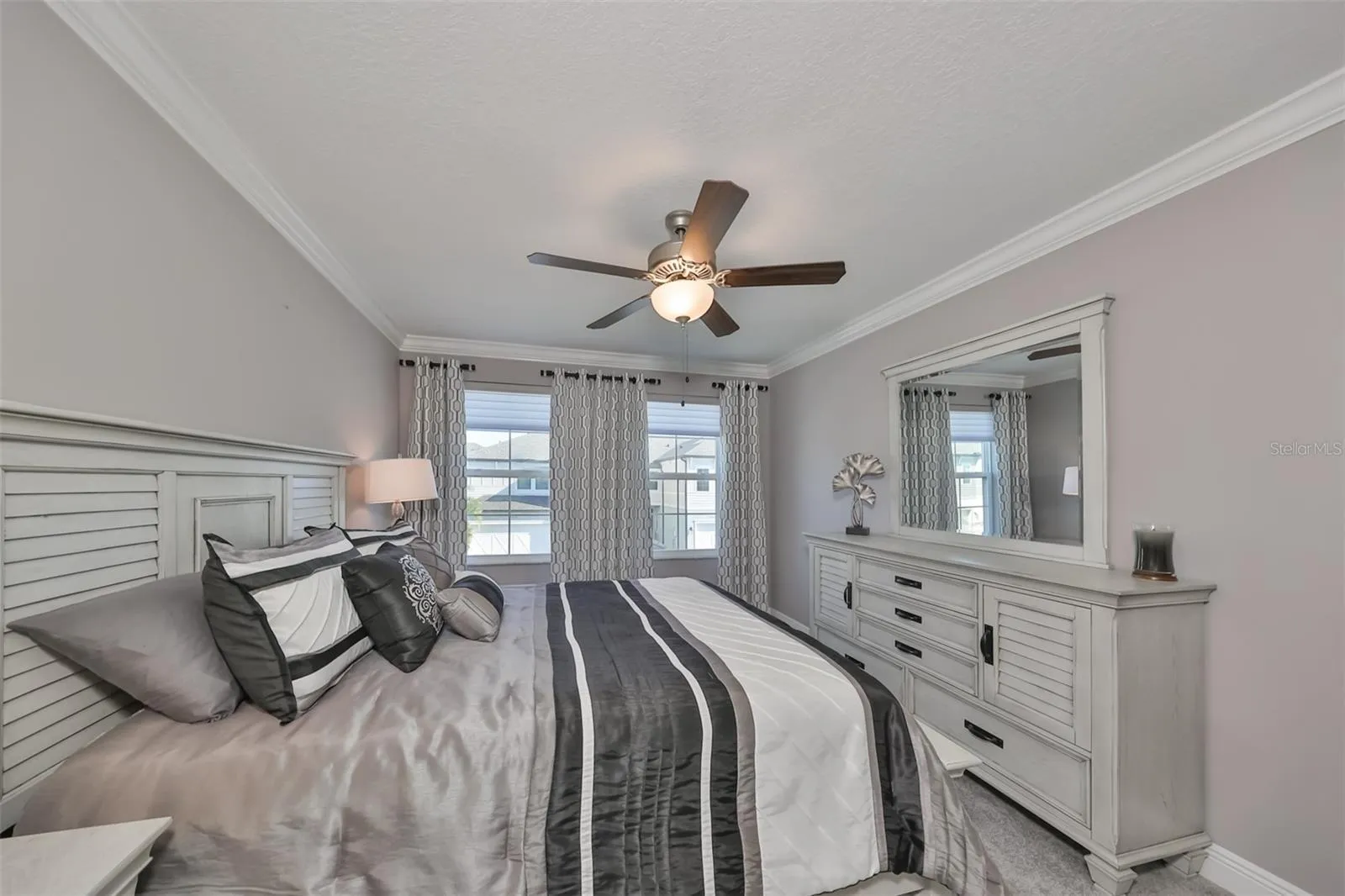 - Ceiling Fans(s), Crown Molding, Open Floorplan, Thermostat, Walk-In Closet(s), Kitchen/Family Room Combo, Window Treatments, Stone Counters, In Wall Pest System, PrimaryBedroom Upstairs