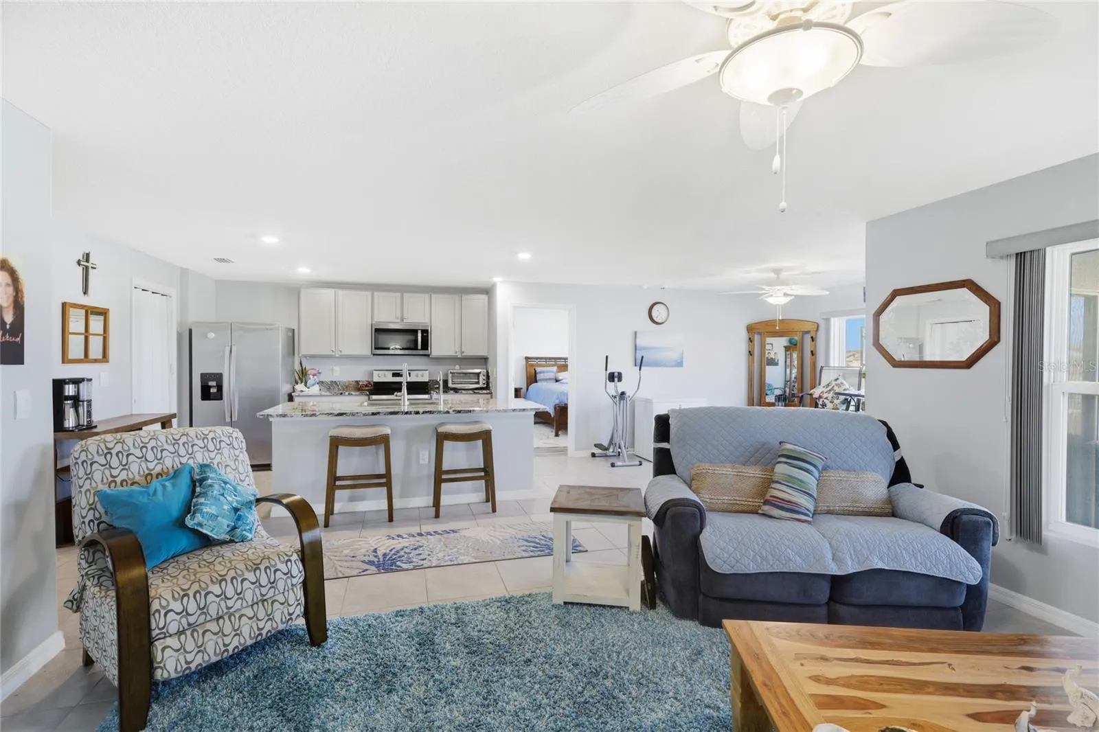 - Ceiling Fans(s), Open Floorplan, Thermostat, Walk-In Closet(s), Eat-in Kitchen, Window Treatments, Stone Counters