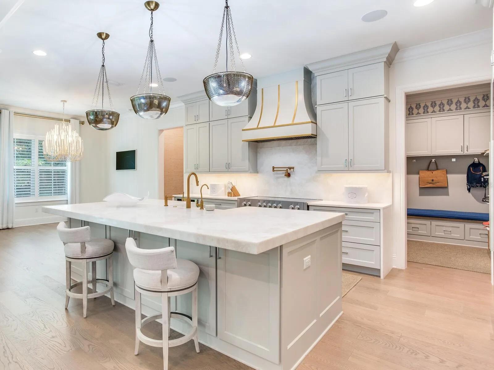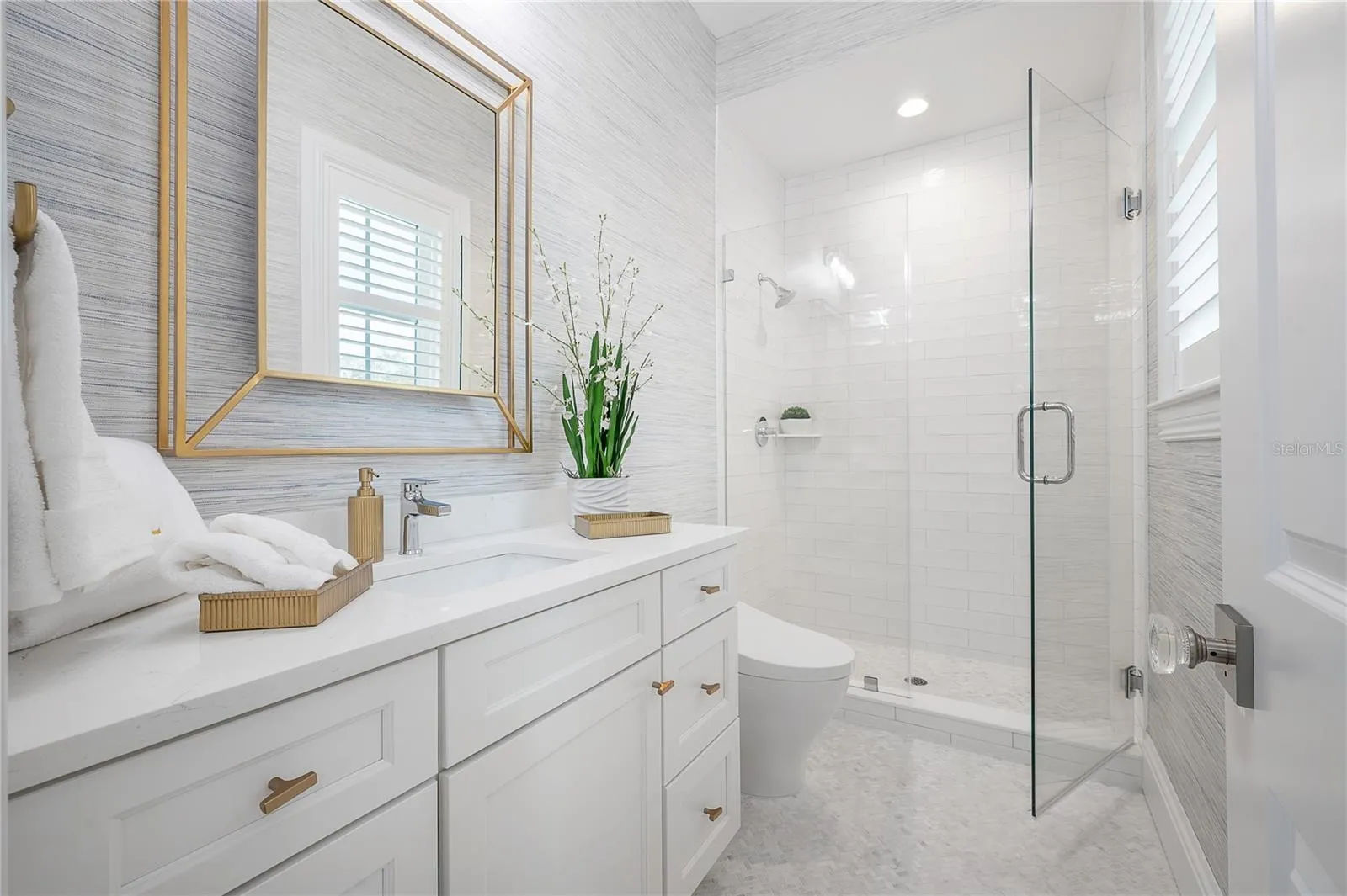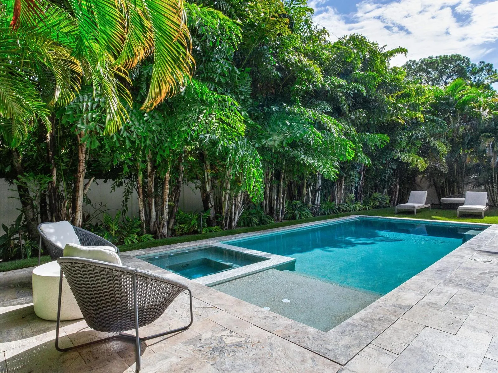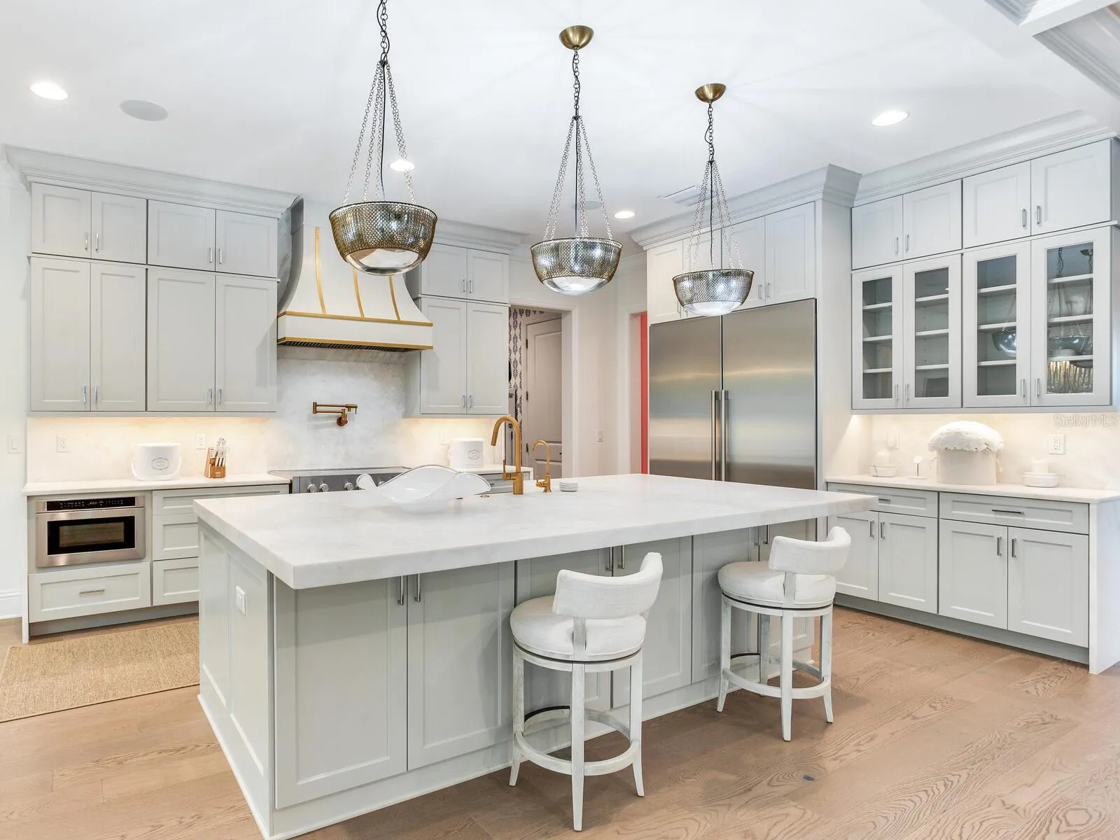 **SEE MATTERPORT FOR TOUR! PUSH CIRCLES TO WALKTHROUGH!** This coastal designed villa is to die for and must be seen in person to truly appreciate. The quality and all the features are over the top…it’s resort living! The coastal design on the outside radiates Florida living with the special landscaping and the inside contemporary design has a very intimate feeling…just not cold contemporary. There are many extra features in the house starting with the outside gated fencing, luxury turf yard, special front trees, formal hedging and unique small leaf tropical palms along the resort-style pool and terrace and of course state of the art irrigation. There is a large roll-out TV for the pool and lounge. The terrace to the pool and house has automatic screens, a large ceiling fan, wall-mounted TV and outdoor kitchen which is all furnished. Get this, an auxiliary AC unit is in the open terrace to cool down the extra hot days. All the doors stack back opening the large family room for indoor/outdoor entertainment. There is a natural gas generator for the entire house and length of time needed. Inside the house has wainscoting, wood baseboards and crown moldings, some ceilings have moldings and are coffered. The white chef’s gourmet kitchen and breakfast area is a dream of Liebherr appliances – 60″ refrigerator/freezer, dishwasher and ice machine, along with custom water fall countertop and marble backsplashes. One can seat people at the counter or on the side breakfast area with an awesome chandelier. In additions, there is a butler’s pantry with a wine fridge and a huge walk-in pantry. The chef’s kitchen of course, opens to the large family room and adjacent terrace. The mud room is next to the kitchen and the 2 ½ high ceiling garage also houses the downstairs washer and dryer. The house keepers dream, one utility room is on the 1st floor and one on the 2nd. An added extra is the great ensuite bedroom with access to the outdoor pool and gardens on the east side of the home. Of course, the second floor is a dream living, with 3/4 bedrooms. The master is large and has two large his-and-hers closets adjacent to the “Hollywood Star* bathroom – with wet showers, large tub room and great separate vanity with cabinets and sinks covering two entire walls. One item of “extraordinaire” is every toilet in the house is an automatic all-in-one Todo. The other bedrooms, have the same villa quality; one is an ensuite and the other has a *Jack-and-Jill to the media/recreation room and morning kitchenette with refrigerator in case someone needs a fifth bedroom. Indeed, this resort is a winner, a deal of a buy and worth seeing in person.