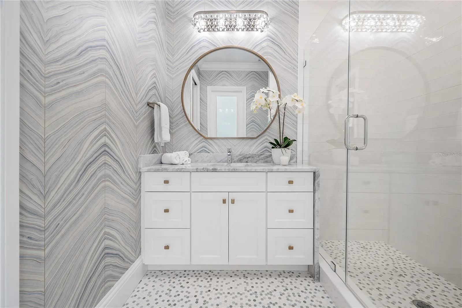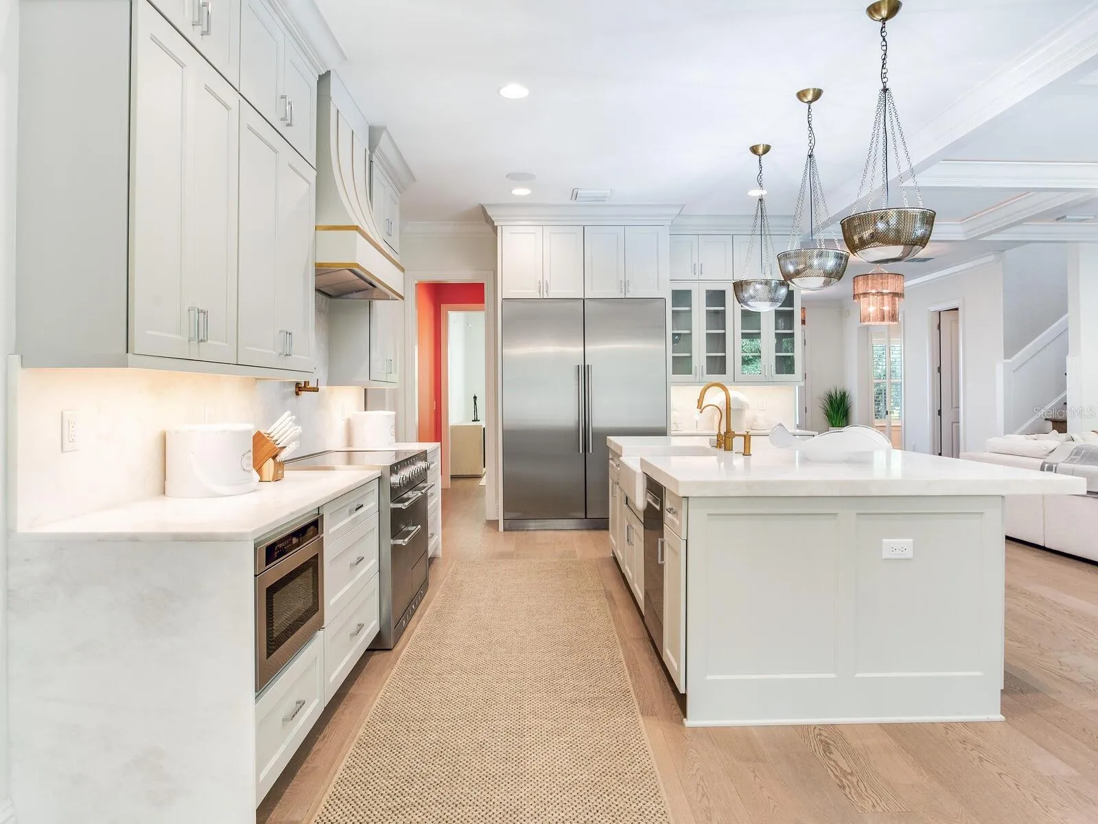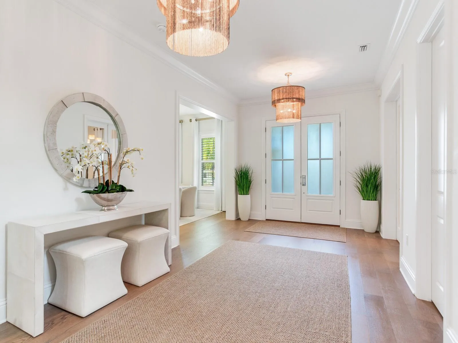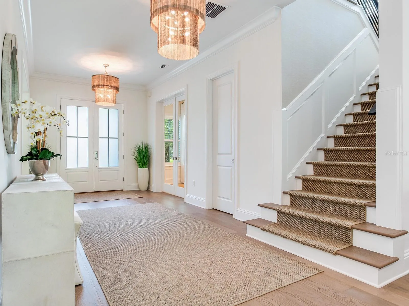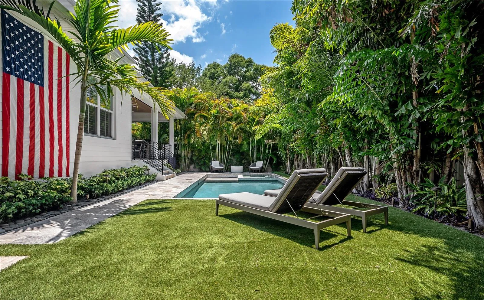 **SEE MATTERPORT FOR TOUR! PUSH CIRCLES TO WALKTHROUGH!** This coastal designed villa is to die for and must be seen in person to truly appreciate. The quality and all the features are over the top…it’s resort living! The coastal design on the outside radiates Florida living with the special landscaping and the inside contemporary design has a very intimate feeling…just not cold contemporary. There are many extra features in the house starting with the outside gated fencing, luxury turf yard, special front trees, formal hedging and unique small leaf tropical palms along the resort-style pool and terrace and of course state of the art irrigation. There is a large roll-out TV for the pool and lounge. The terrace to the pool and house has automatic screens, a large ceiling fan, wall-mounted TV and outdoor kitchen which is all furnished. Get this, an auxiliary AC unit is in the open terrace to cool down the extra hot days. All the doors stack back opening the large family room for indoor/outdoor entertainment. There is a natural gas generator for the entire house and length of time needed. Inside the house has wainscoting, wood baseboards and crown moldings, some ceilings have moldings and are coffered. The white chef’s gourmet kitchen and breakfast area is a dream of Liebherr appliances – 60″ refrigerator/freezer, dishwasher and ice machine, along with custom water fall countertop and marble backsplashes. One can seat people at the counter or on the side breakfast area with an awesome chandelier. In additions, there is a butler’s pantry with a wine fridge and a huge walk-in pantry. The chef’s kitchen of course, opens to the large family room and adjacent terrace. The mud room is next to the kitchen and the 2 ½ high ceiling garage also houses the downstairs washer and dryer. The house keepers dream, one utility room is on the 1st floor and one on the 2nd. An added extra is the great ensuite bedroom with access to the outdoor pool and gardens on the east side of the home. Of course, the second floor is a dream living, with 3/4 bedrooms. The master is large and has two large his-and-hers closets adjacent to the “Hollywood Star* bathroom – with wet showers, large tub room and great separate vanity with cabinets and sinks covering two entire walls. One item of “extraordinaire” is every toilet in the house is an automatic all-in-one Todo. The other bedrooms, have the same villa quality; one is an ensuite and the other has a *Jack-and-Jill to the media/recreation room and morning kitchenette with refrigerator in case someone needs a fifth bedroom. Indeed, this resort is a winner, a deal of a buy and worth seeing in person.