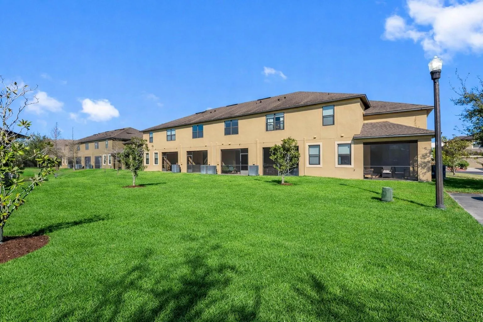 Additional highlights include wood and ceramic tile flooring in wet areas, arched doorways, 2-inch blinds, energy-efficient lighting, Low-E double-pane windows, R-30 insulation, and an eco-friendly geothermal hot water heater. The screened rear patio overlooks a tranquil pond, creating the perfect spot to relax or grill.