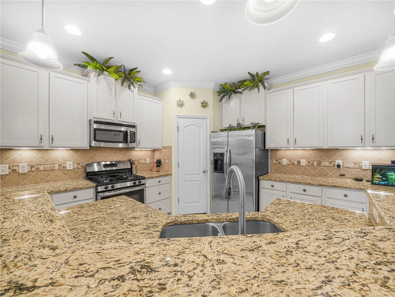 Entertaining is a delight in the spacious formal dining room, ready to host your gatherings and display your cherished china cabinet. The heart of the home, the kitchen, is a culinary dream with its center snack bar island, 42” cabinets, lustrous granite countertops, a walk-in pantry, and sleek stainless steel appliances. A natural gas supply powers the dryer, hot water heater, and range, adding efficiency and convenience.