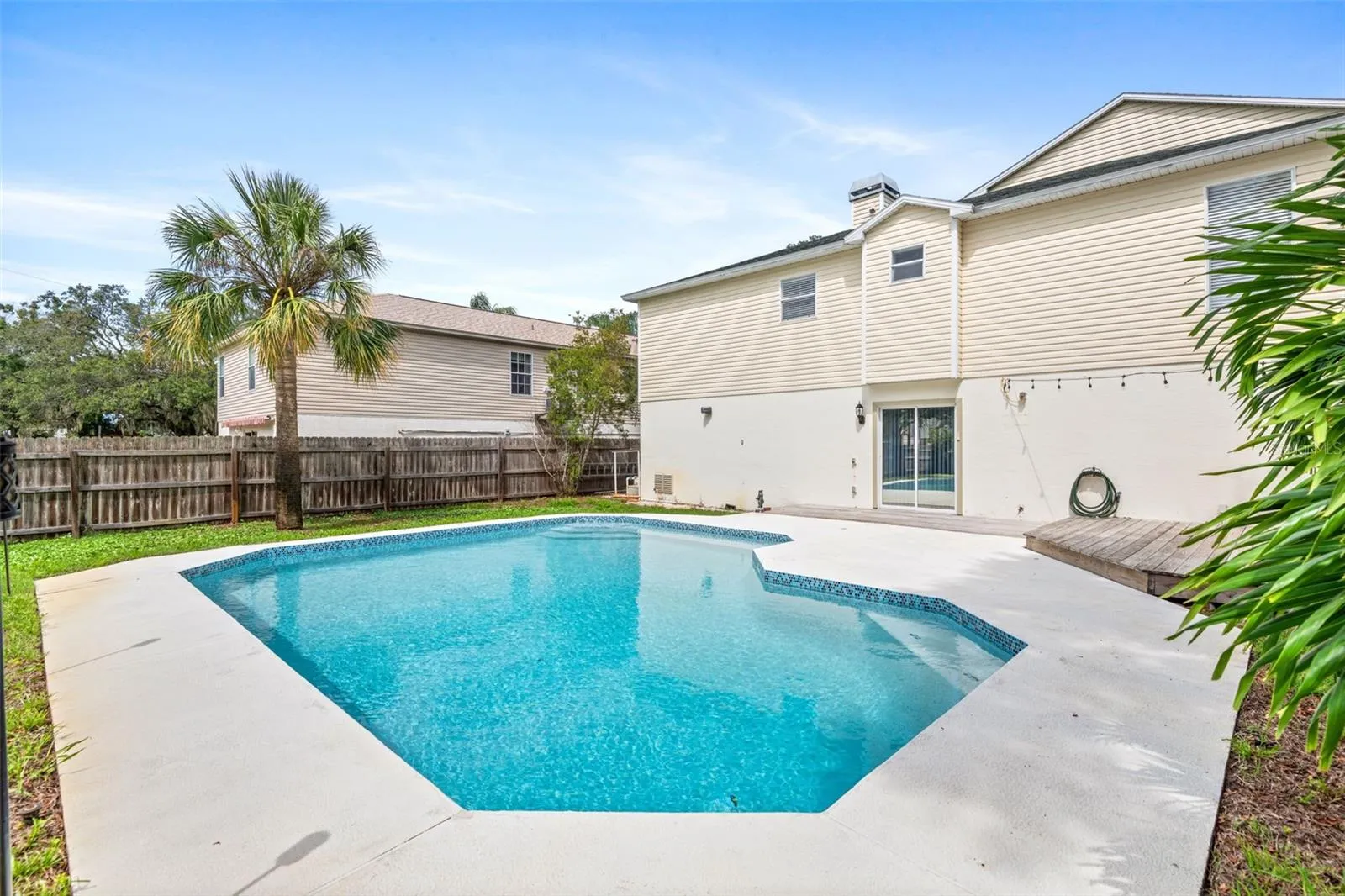 Recent price reduction of over $15,000!!! Experience luxury living in this exquisite 4-bedroom, 2-bathroom home with an oversized 2-car garage, located in the highly sought-after Sunset View neighborhood. This meticulously maintained property just minutes from the beach boasts numerous upgrades, including a NEW ROOF, resurfaced pool (2024), whole-home water softener, newer water heater (2022), new appliances, fresh interior paint, and fully updated kitchen and bathrooms. From the moment you arrive, you’ll be captivated by the impeccable landscaping and lush Saint Augustine lawn. Step inside to discover stunning bamboo floors, updated lighting fixtures, wood-burning fireplace, ceiling fans, and abundant natural light. The fully updated kitchen features granite countertops, solid wood shaker-style cabinets, a tiled backsplash, newer stainless-steel appliances, and a spacious kitchen island—perfect for family gatherings. The primary bedroom offers two large closets and an ensuite bathroom, while the split floor plan ensures privacy for the three additional bedrooms and bathroom. Downstairs, you’ll find over 800 square feet of bonus air-conditioned space, ideal for a home gym, office, playroom, or simply a retreat from the Florida sun. Outside, enjoy the large, fully fenced yard with a well water irrigation system and a newly resurfaced pool and wood deck—perfect for relaxing or entertaining. With no HOA restrictions, there’s ample space to park your boat or RV, making this property an ideal vacation rental. Location is key, and this home is just minutes from Fred Howard Beach Park, Sunset Beach, the Historic Sponge Docks, Craig Park/boat launch, top-rated golf courses, downtown Tarpon Springs, and a variety of shopping and award-winning restaurants. Nestled on over 1/3 acre, this home offers the perfect blend of convenience and tranquility. Call today for your exclusive viewing!