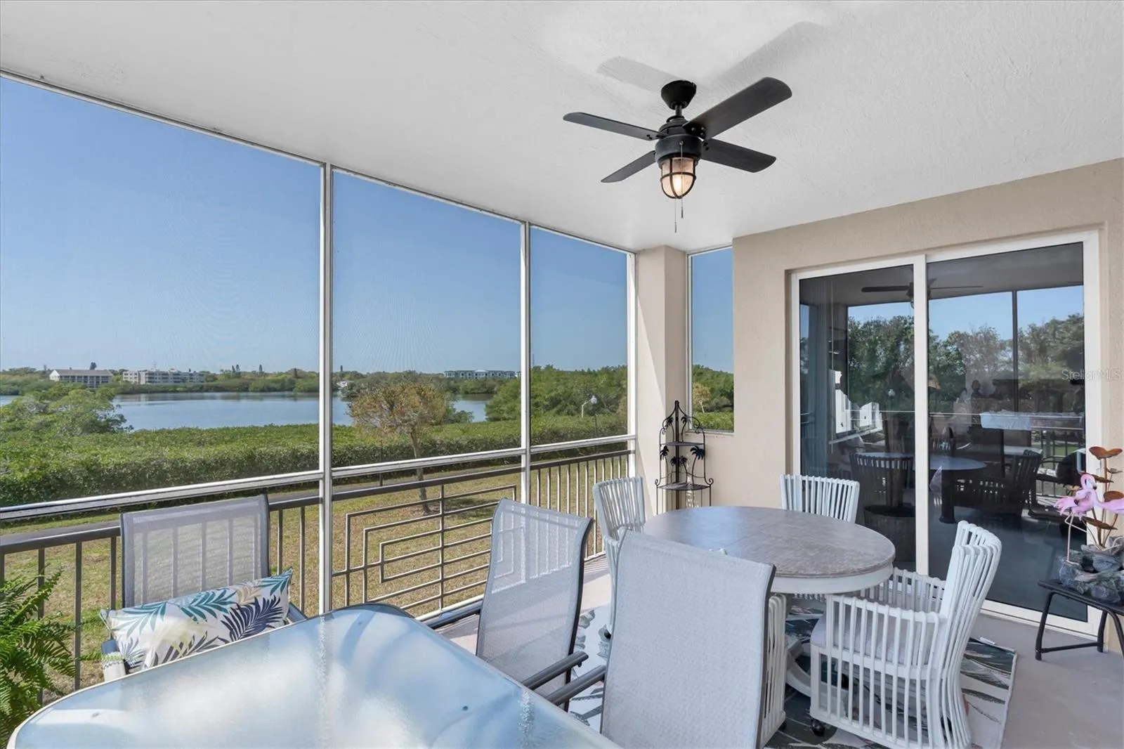 EXCEPTIONAL CORNER UNIT 3BR, 2BA CONDO WITH STUNNING WATER VIEWS! Discover exceptional waterfront living in this spacious 3-bedroom, 2-bath corner-unit condo located in the highly sought-after gated community of Seminole Isle. Offering approximately 2,100 square feet of living space, this light-filled residence captures sweeping views of Long Bayou and the surrounding conservation areas, creating a peaceful backdrop for everyday living. Recent renovations costs exceed $130,000 which include stunningly beautiful porcelain floor tile throughout, precision installed in the diagonal offset pattern, complete painting throughout, new lighting fixtures and two complete bathroom renovations with installation of a deep, heated air bubbling tub for a spa-like experience, all decorated with gorgeous fixtures. The open floor plan is welcoming and features high ceilings and expansive windows that bring in natural light and showcase the beautiful water views throughout the main living spaces. The kitchen is designed for both functionality and style, featuring abundant cabinetry, stone countertops, stainless steel appliances, a breakfast bar, and a cozy dining nook with bay windows offering serene nature views. The spacious great room flows seamlessly to a large screened-in balcony where you can relax and enjoy sunsets, gentle breezes, and the natural beauty of the glistening bayou and mangroves with all the tropical birds and the occasional dolphins playing or manatee sightings. The primary bedroom suite serves as a private retreat with tranquil water views, two walk-in closets, and the newly renovated, generously sized ensuite bathroom with quartzite counter tops, dual vanities, stylish wall tile, a deep, heated air bubbling tub, and a separate walk-in shower. Two additional bedrooms provide flexibility for guests, family, or a home office, an inside laundry/utility room, assigned under-building parking, and numerous thoughtful upgrades throughout the home add even more convenience, style and comfort. Residents of Seminole Isle enjoy resort-style amenities including a heated pool, clubhouse, fitness center, tennis and pickleball courts, kayak and paddleboard launch with storage, fishing pier, picnic pavilions with grills and fire pit, and scenic walking paths throughout the beautifully maintained grounds. Located directly across from Seminole Lake Park and just minutes from the Gulf beaches, shopping, dining, downtown St. Petersburg, and Tampa International Airport, this home offers the perfect combination of waterfront tranquility and convenient Florida living. Schedule your private showing today.
