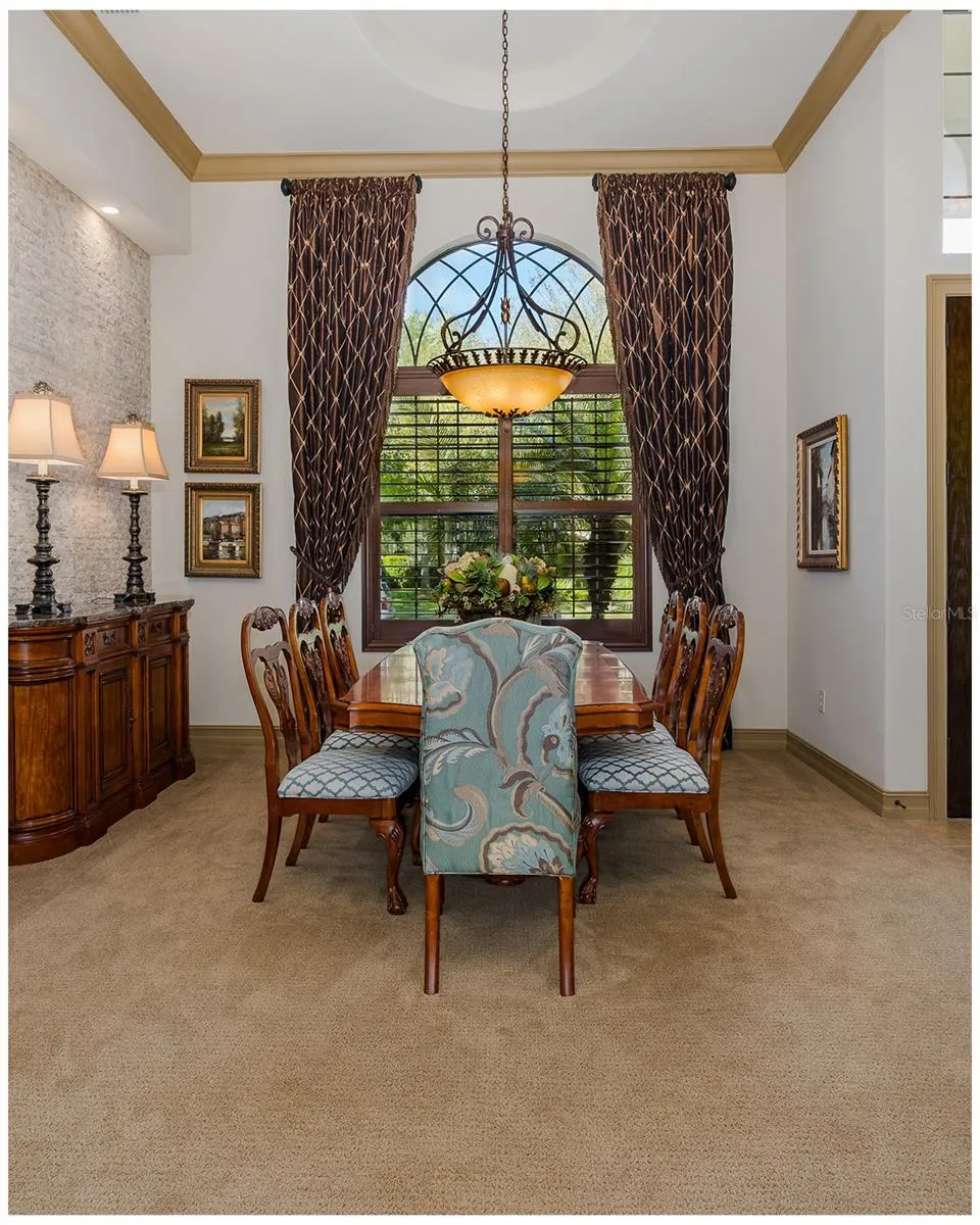 Welcome to an Extraordinary Lifestyle — Floresta at Champions Club. Nestled behind the exclusive gates of Floresta within the prestigious Champions Club golf course community, this impeccably maintained original-owner residence is a rare offering that seamlessly blends refined elegance with effortless everyday living. From the moment you arrive, the attention to detail is unmistakable. Soaring tray ceilings adorned with rich crown molding and intricate wood details set the tone in both the formal living and dining rooms, where elegant window treatments frame every vista with grace. This is a home that was built to impress — and has only grown more distinguished with time. The custom chef’s kitchen is a true culinary sanctuary, appointed with rich wood cabinetry, gleaming countertops, and a show-stopping custom hood. A sun drenched breakfast nook invites you to start your mornings with serene views of the shimmering pool and tranquil pond beyond. The heart of the home – the family room – is warm and inviting, anchored by a gas fireplace, dramatic wood beam ceilings, and atrium doors that blur the line between indoor and outdoor living, opening directly to your private outdoor haven. Retreat to the oversized primary suite, where a generous sitting area and spa-inspired en suite bath await. His-and-her vanities, a luxurious soaking tub, and a custom shower create a daily escape from the ordinary. Two additional oversized first-floor bedrooms share a well-appointed bath, while the media room / home theatre delivers the ultimate cinematic experience without ever leaving home. A dedicated pool bath services both the movie room and the outdoor living area with ease. Rounding out the first floor: a stylish half bath, a fully equipped laundry room, and a practical drop zone.