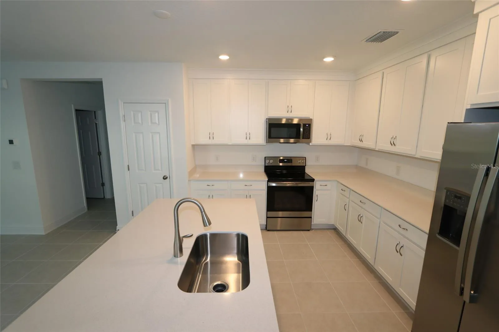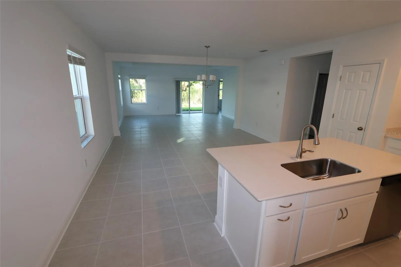Head down the foyer into the heart of the home where you enter a spacious combination kitchen, dining, and family area. You’ll love trying new recipes in your kitchen with spacious countertop space, and oversized island. The dining room opens up into the spacious great room that overlooks the patio lanai. You’ll love lounging on your couch and looking out the doors to a beautiful vista.