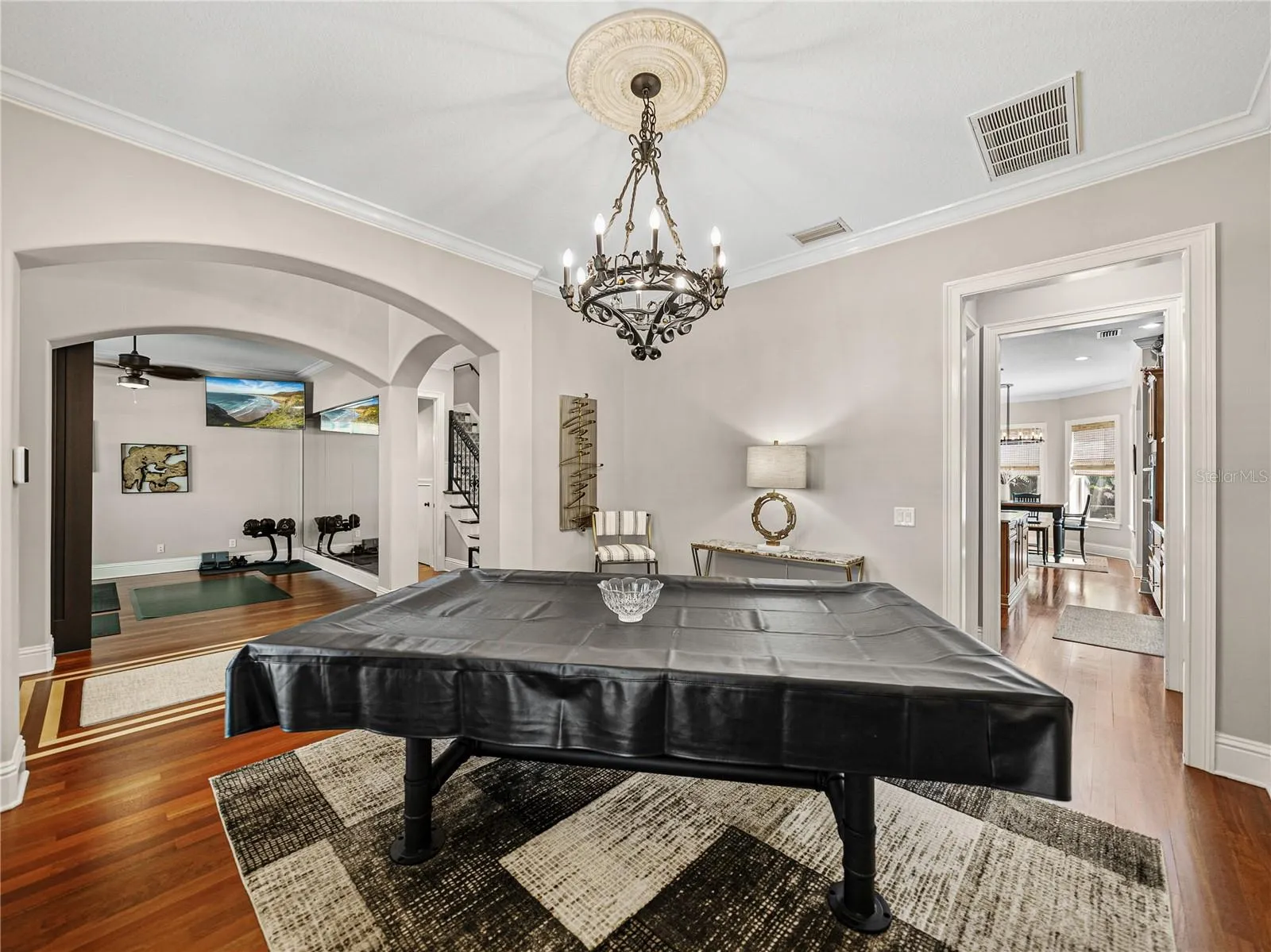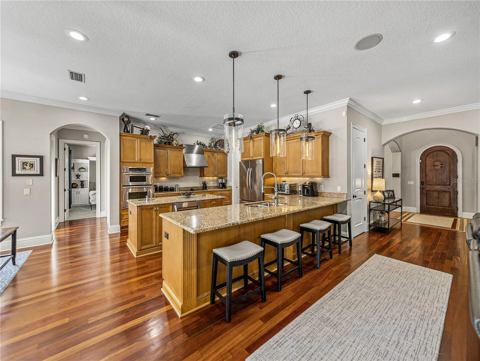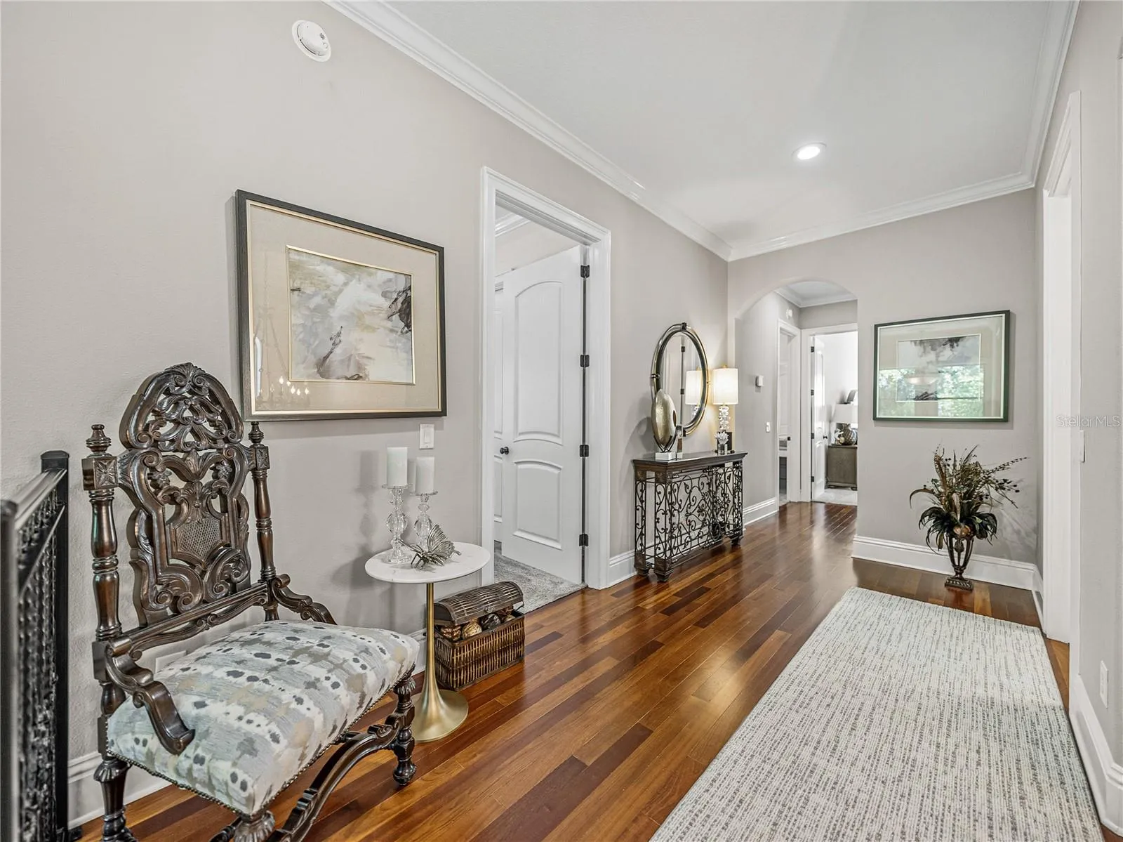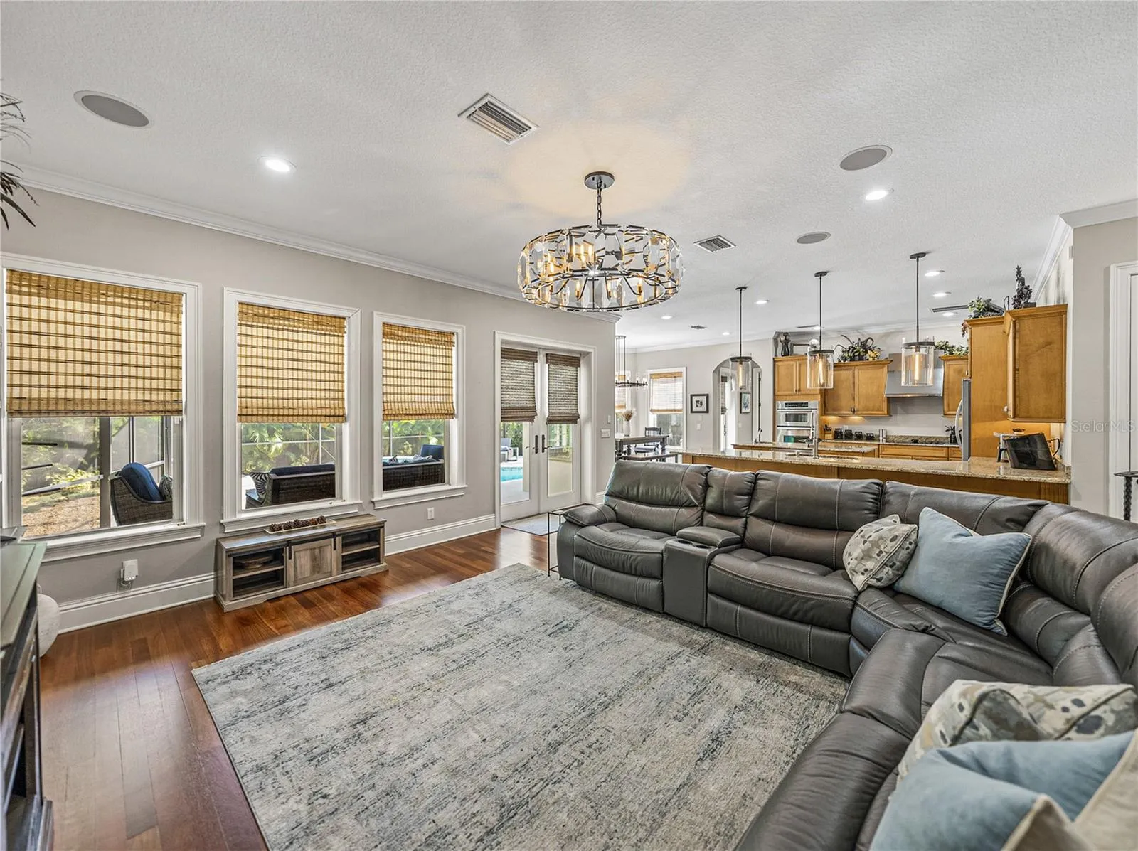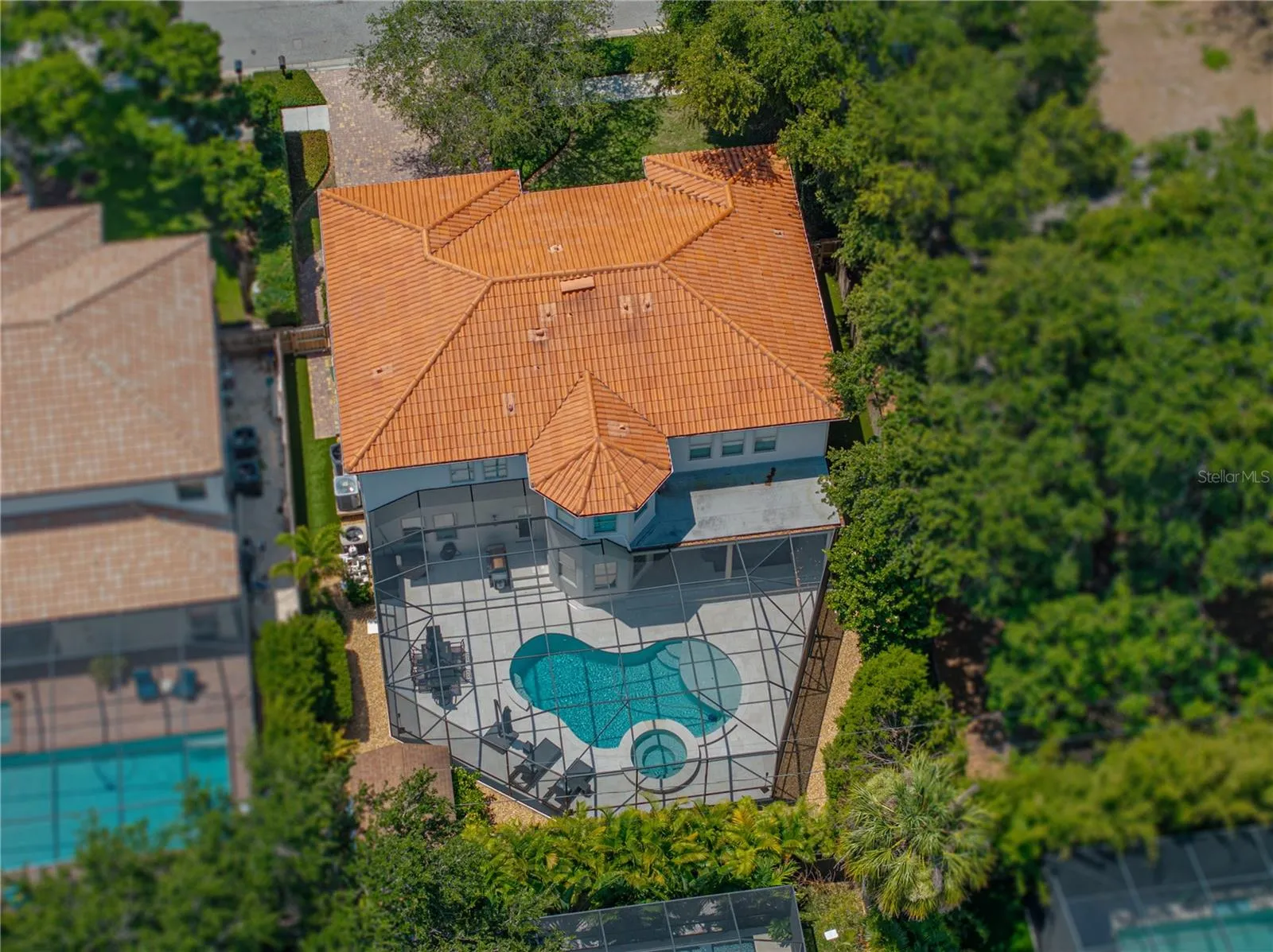 Fall in love with this impeccably maintained 4-bedroom, 4.5-bath Spanish Mediterranean pool home. Featuring soaring 10-foot ceilings, a dramatic entrance, crown molding, elegant Brazilian Cherry hardwood floors, custom wood cabinetry, and granite countertops. This gem is adorned with numerous upgrades including Restoration Hardware lighting fixtures, ceiling fans, impact resistant insulated tempered glass windows and deluxe wrought iron railings. And the home is pre-wired for a home audio system. The expansive open kitchen and family room combo includes a cozy dinette, high-end stainless steel appliances, a wine fridge, an eat-at-bar, and a walk-in pantry. The downstairs guest bedroom, dinette, kitchen, and family room all offer views of the pool and covered lanai. The excellent floor plan features a full guest suite on the main floor, along with formal dining and living rooms and half bath. Upstairs, you’ll find the primary bedroom, two additional bedrooms (one with a front-facing balcony), a laundry room, and an upstairs den or office that can serve as a fifth bedroom if needed. This home boasts two-story, sturdy block construction, unlike the typical block first, frame second construction. The beautiful pool/spa wrapped in travertine pavers, manicured lawn, and outdoor spaces are just as inviting as the interior. Additional home features include a classic clay barrel tile roof, upgraded two-stage HVAC units, a new water heater, and natural gas hookups for gas appliances if desired. The oversized garage has mezzanine storage racks and out back is a 100sf storage shed for maximum storage. Your new home sits in the finest schools district in the Tampa Bay area, including Plant HS and in the heart of high-demand South Tampa. Concerned about flooding? This home sits at one of the highest elevations in South Tampa. No need for flood insurance. Location, location, location. You can walk to Bayshore Blvd and celebrate Gasparilla with local pirates. Hyde Park, downtown Tampa and Tampa International Airport are all within 15 minutes. Famous sugar sand gulf coast beaches are a short 30 minutes from your door. See the Virtual Tour tabs for a YouTube virtual fly through and the 3D Matterport with floor plans. Don’t miss your chance to see this absolutely stunning home!