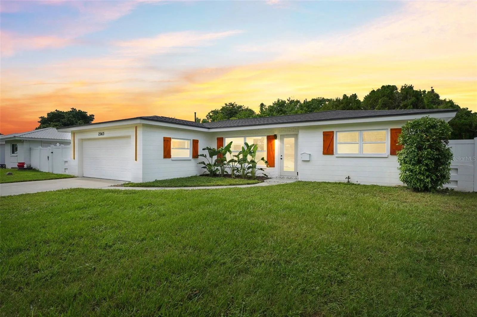 Home went through both hurricanes like a CHAMPION with no damages! High & Dry! Clear 4-pt & wind mitigation on hand. Stunning 3-bedroom, 2-bath St. Pete home with a 2-car garage combines mid-century charm with modern elegance. Designer finishes worthy of a magazine highlight the home’s preserved mid-century details. The meticulously chosen color palette and lighting scheme create a warm and inviting ambiance throughout. Major upgrades include a HURRICANE-IMPACT windows and doors, brand-new roof, new AC, and water heater – ensuring peace of mind for years to come.