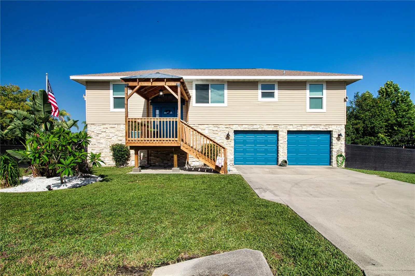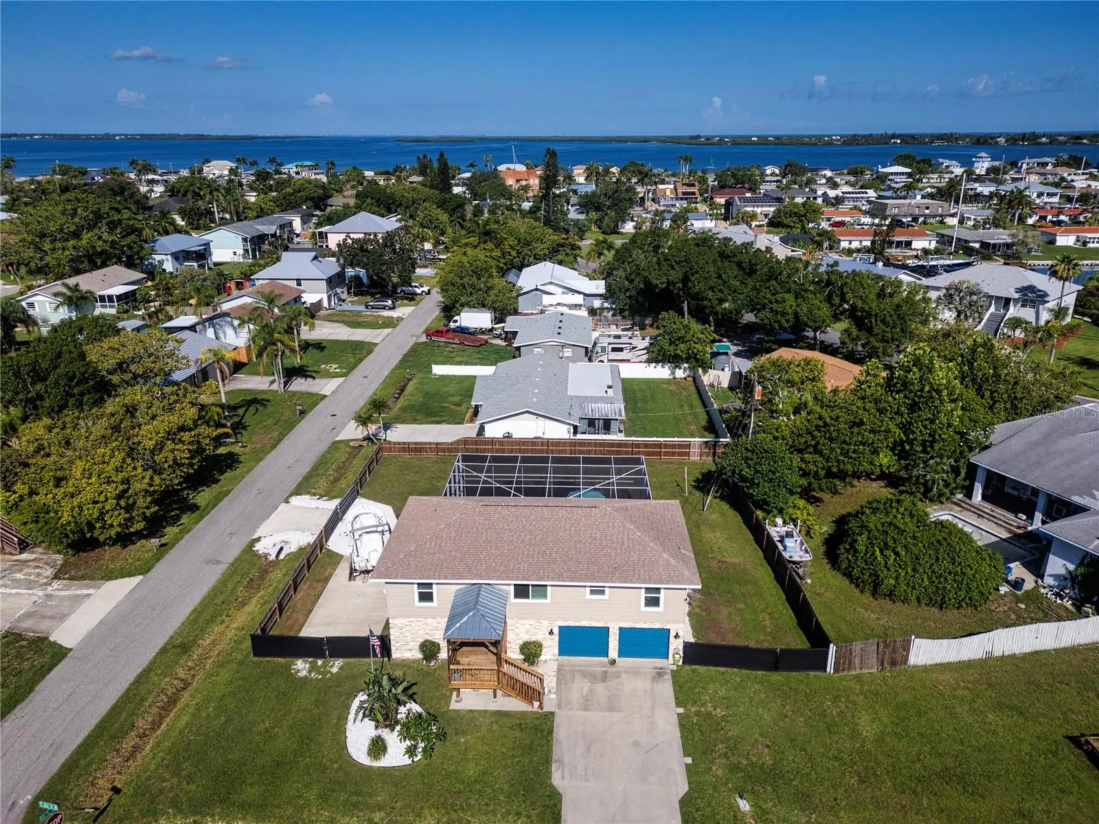 No HOA in this Sought after Community of Palmetto Point! Bring Your Boat and Pets! Beautifully Remodeled Pool Home Features 3 Bedrooms, 2 and 1/2 bathrooms, Bonus Room and Oversized 2 Car Garage, All Situated on a Triple Corner Lot that is Fully Fenced. Palmetto Point has an Optional Community Boat Ramp with Direct Access to Terra Ceia Bay, Recreation Hall and Dog Park all Available for a Low Cost Annual Membership. Talk about Curb Appeal! Notice the New Front Covered Deck, Lush Lawn and Landscaping Along with the Decorator Color on the Front Entry and Matching Garage Doors. Just Inside the Entry you have Inlaid Tile and Attached Entry Table. Go on Upstairs to the Open and Inviting Living Space with Vaulted Ceilings, Crown Molding, Impact Windows, Luxury Vinyl Floors Throughout, and Split Bedrooms. The Kitchen is Equipped with Real Wood Cabinets, Granite Counters, Newer Stainless Steel Appliances including French Door Refrigerator, Convection/ Air Fry Range and Breakfast Bar. The Dining Area with Wainscot Flows with the Shaker Style Kitchen Cabinets and has Enough Room to Seat 6 Comfortably. The Primary Bedroom has a Custom Barn Door, Walk-In Closet and En Suite Bathroom with Dual Sinks and Large Walk-in Tiled Shower. Bedrooms 2 and 3 are on the Other Side of the Living Room and Share a Full Bathroom. Beyond the Sliding Doors is the Newer 10X21 Back Deck with Stairs Leading Down to Pool. Or You Could Go Down the Stairs at the Entry for Garage Access on the Right, a Large Closet under the Stairs and to the Left a Large Bonus Room (Bedroom, office, Toy Room) Complete with 1/2 Bath and Access to the Pool and Backyard. A Large Laundry Room with an Additional Nook For Storage all on the Lower Level. Now to the Backyard! There is Another Driveway on 48th Street with New Culvert Leading to the Parking Pad Measuring 15’x35′ with a 20′ Gated Access. There are also Gates in the Front on each side of the House for Backyard Access. The Backyard also has French Drain to keep it Dry. The 15’x35′ Pool with Fountain Feature and Electric Heat is Sure to Be a Hit. Add that along with a Covered area to Stay out of the Sun with Mounted TV to Entertain. Impact Windows and Sliding Door 2021, Roof 2017, HVAC 2023, and HWT 2019. Assumable Flood Insurance. Thinking of an Investment? Vacation Rental? This Beautiful Home is Move In Ready! Call for a Private Showing!
