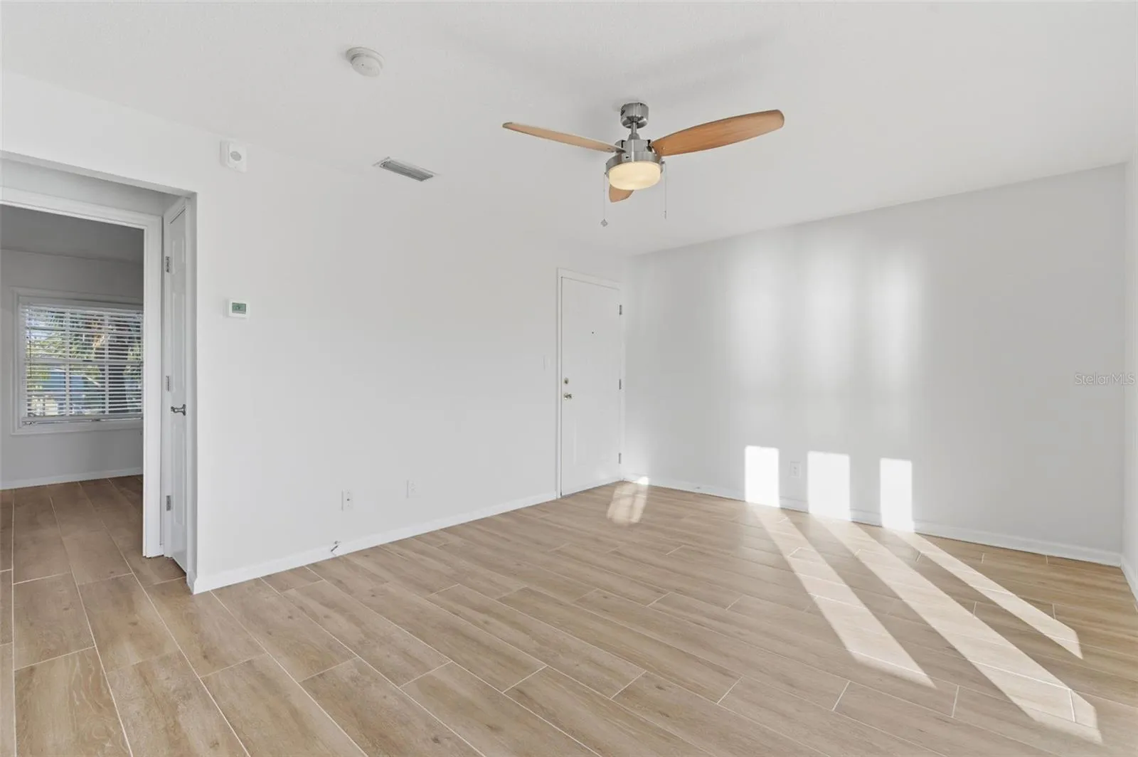 - Ceiling Fans(s), Open Floorplan, Thermostat, Living Room/Dining Room Combo, Solid Wood Cabinets