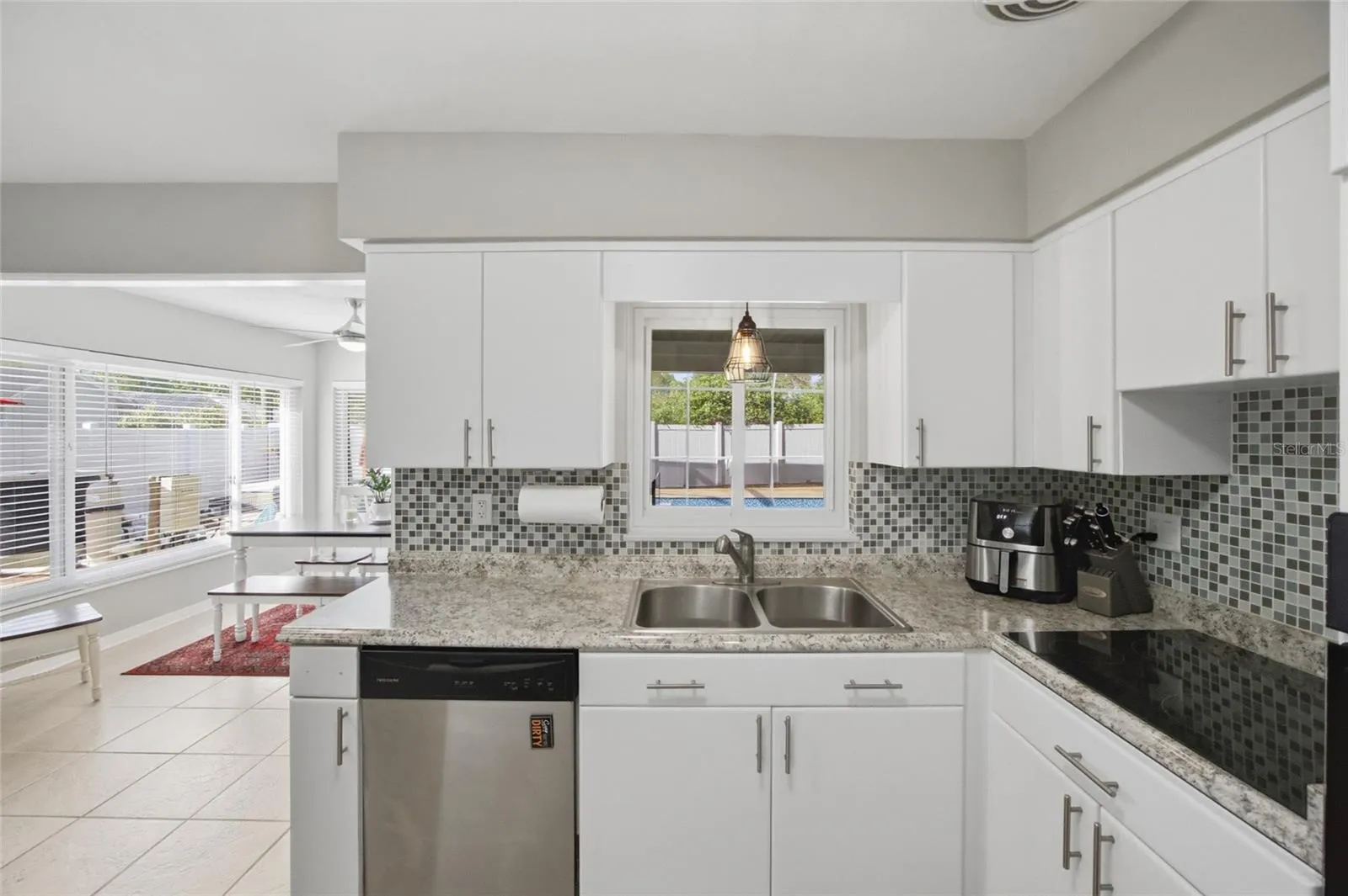 Don’t miss this fully furnished, turnkey pool home in Brentwood Heights, a centrally located St. Petersburg neighborhood known for its larger lots, no HOA, and easy access to Downtown St. Petersburg, Gulfport, and the Gulf beaches. Ideal as a first-time home, second home, or income-producing Airbnb or short-term rental, this beautifully renovated 2-bedroom, 2-bath block home is move-in ready and meticulously maintained. Inside, you’ll find a bright, open layout with an updated kitchen featuring stainless steel appliances. The primary suite offers direct access to the screened-in pool area through double sliding doors, creating easy indoor-outdoor living, along with a spacious walk-in closet with custom built-ins. The ensuite bathroom features dual sinks, stone countertops, and a walk-in shower with floor-to-ceiling tile and a modern accent wall.Step outside to your private outdoor retreat featuring a 2023 pool with travertine decking, spillover spa, heat pump with cooling feature, screened enclosure, ambient lighting, covered patio, and outdoor shower, all set within a spacious, fully fenced yard ideal for relaxing or entertaining. Additional updates include a brand new AC, newer roof (2022), water heater (2023), sewer line (2022), and upgraded 200-amp electrical panel. The long double driveway offers ample parking, while the large yard is perfect for pets, play, or outdoor living. This property offers a rare combination of location, flexibility, and true turnkey convenience—ready for immediate enjoyment or rental income.