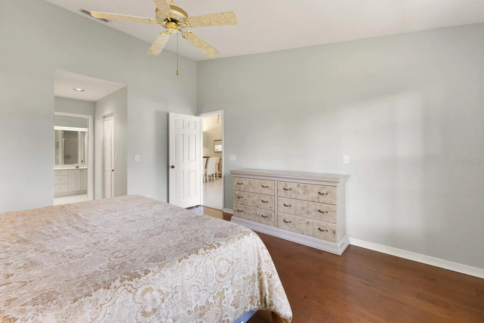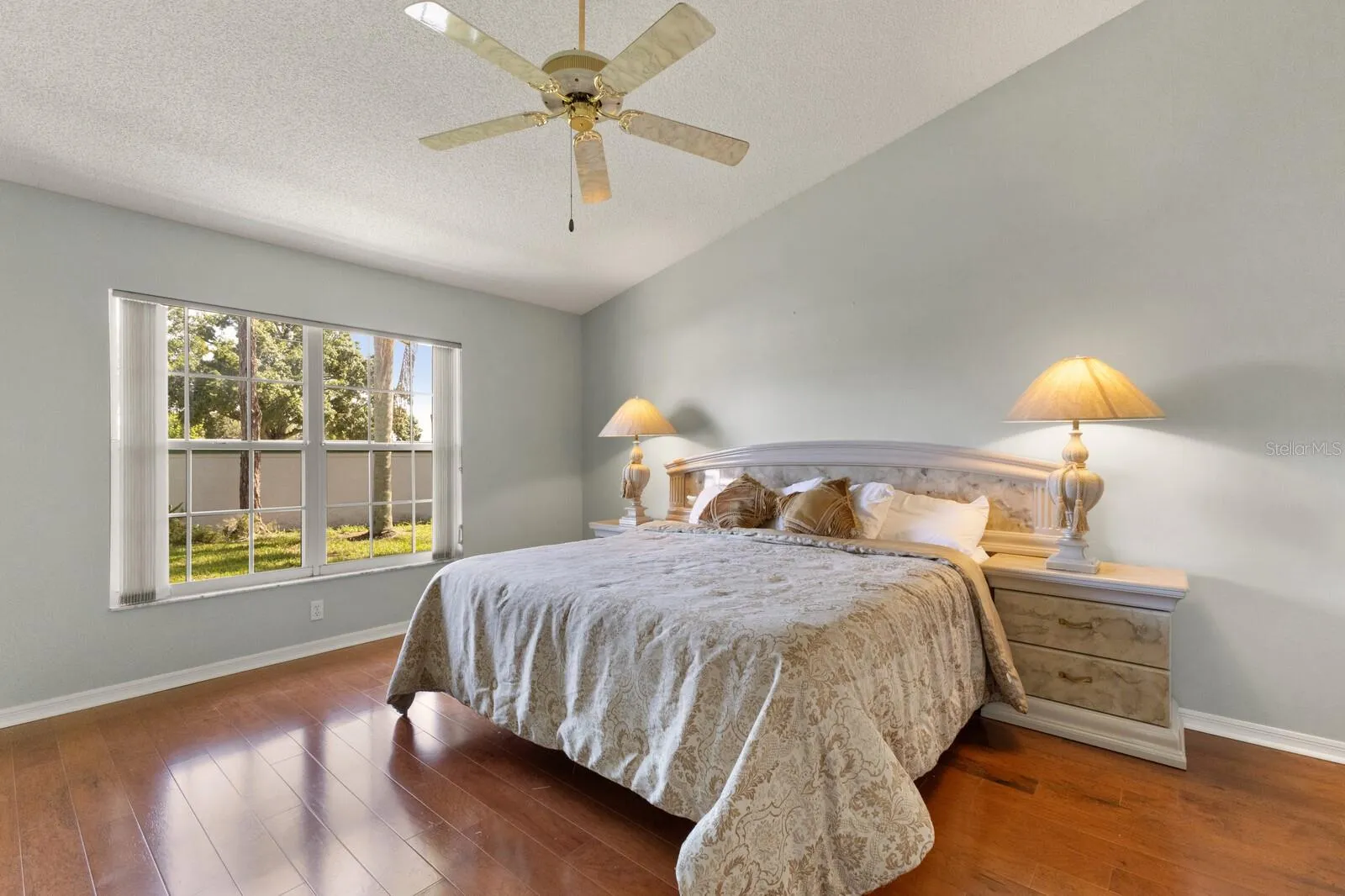 - Ceiling Fans(s), Open Floorplan, Thermostat, Walk-In Closet(s), Living Room/Dining Room Combo, Eat-in Kitchen, Primary Bedroom Main Floor, High Ceilings, Stone Counters, Solid Surface Counters, Cathedral Ceiling(s)