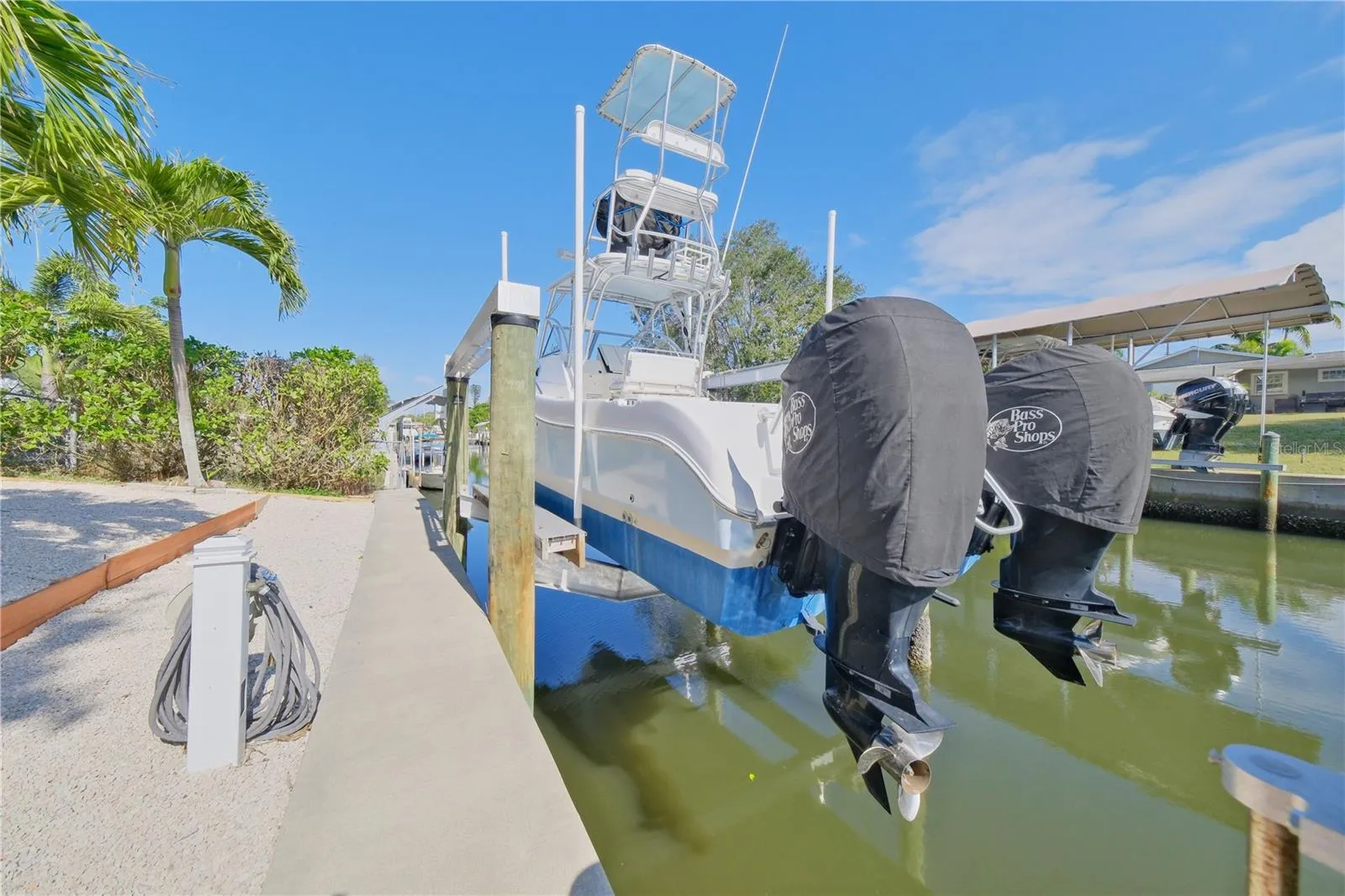 IMPROVED PRICE!!! This tropical adventure home is the one you’ve been waiting for, where everyday living is a waterfront vacation!! This fully updated 2,400 sq ft, 4 bedroom/3 full bath home, is nestled on a deep, sailboat water canal with direct access to Sarasota Bay and the Gulf of America (no bridges) – a boater’s paradise with wide, unobstructed access to sandbars, deep-water fishing, water sports, waterfront restaurants, beaches and more – all within minutes!! Enjoy 70 FEET of water frontage on this canal (with extra-wide width)! In 2020, a NEW DOCK, NEW 16,000 lb. BOAT LIFT!! NEW SEAWALL (2015), and a fish cleaning station was completed!! You’ll experience peace of mind here with a NEW ROOF!! NEW A/C (1 unit), 2-A/Cs. for zoned efficiency, impact-resistant windows, 2-Newer hot water heaters, newer appliances throughout! There is WHOLE-HOME GAS ENERGY for huge savings (also has full electric for flexible options). This home was never affected by Hurricanes nor storm surges! Entering the home, you’ll be greeted with with an OPEN FLOOR PLAN, NEW TILE THROUGHOUT, NEW large, CUSTOM KITCHEN with REAL WOOD CABINETS and generous, STONE COUNTERTOPS and bar seating! The dining/flex space is currently enjoyed as a game room with a pool table perfectly situated for family and friends to have fun. There are TWO generously-sized PRIMARY bedrooms (en suites) with updated bathrooms offering many flexible options for guests or mother-in-law suite possibilities. There is a spacious, indoor laundry room. Don’t miss all the hall closets that were smartly added during 2003 renovations. Step into the heartbeat of this exceptional home – the EXPANSIVE, UNDER ROOF/SCREENED LANAI! This sanctuary offers year-round enjoyment of endless sunsets overlooking the canal and is embraced by the tropical retreat of the upgraded grounds and rich, tropical landscaping. Whether your entertaining large gatherings with Al fresco dining or taking a rest after boating/fishing with family, this large space is set-up for it all with brand new tile flooring, large outdoor kitchen/bar, gas stove cooking (perfect for your fish), refrigerator, deep freezers (perfect for your fresh catch of grouper), and a commercial ice maker! There is ample space for a future pool. Bring your RV – there is dedicated parking on the side of home with vinyl gate/fencing. You’ll appreciate additional parking spaces which includes a carport, extended and circular driveway. The yards have well-irrigation throughout (more savings). There are NO HOA/NO DEED RESTRICTIONS – (NO FEES), but residents of Bayshore Gardens enjoy an amenity-rich community with an Olympic-sized pool (only $10/year key fob access), pickleball, tennis, basketball courts, playgrounds, a wood shop, private marina, and boat launch. This home is located in a coveted location with convenient access to award-winning beaches, Anna Maria Island, Siesta Key, SRQ Airport, IMG Academy, Downtown Sarasota dining and shopping. Homes like this at this price point, with direct Gulf access and waterfront/canal living, do not last long, so schedule your private showing today and let your ultimate, Florida waterfront lifestyle begin! Be it a full-time home, vacation retreat, or an income-producing rental (short term rental IS allowed), you’ll quickly see the unrivaled value this home has to provides for waterfront living in Bradenton/Sarasota! Pool table, 2 deep freezers, commercial ice maker, remain! Furnishings are negotiable!