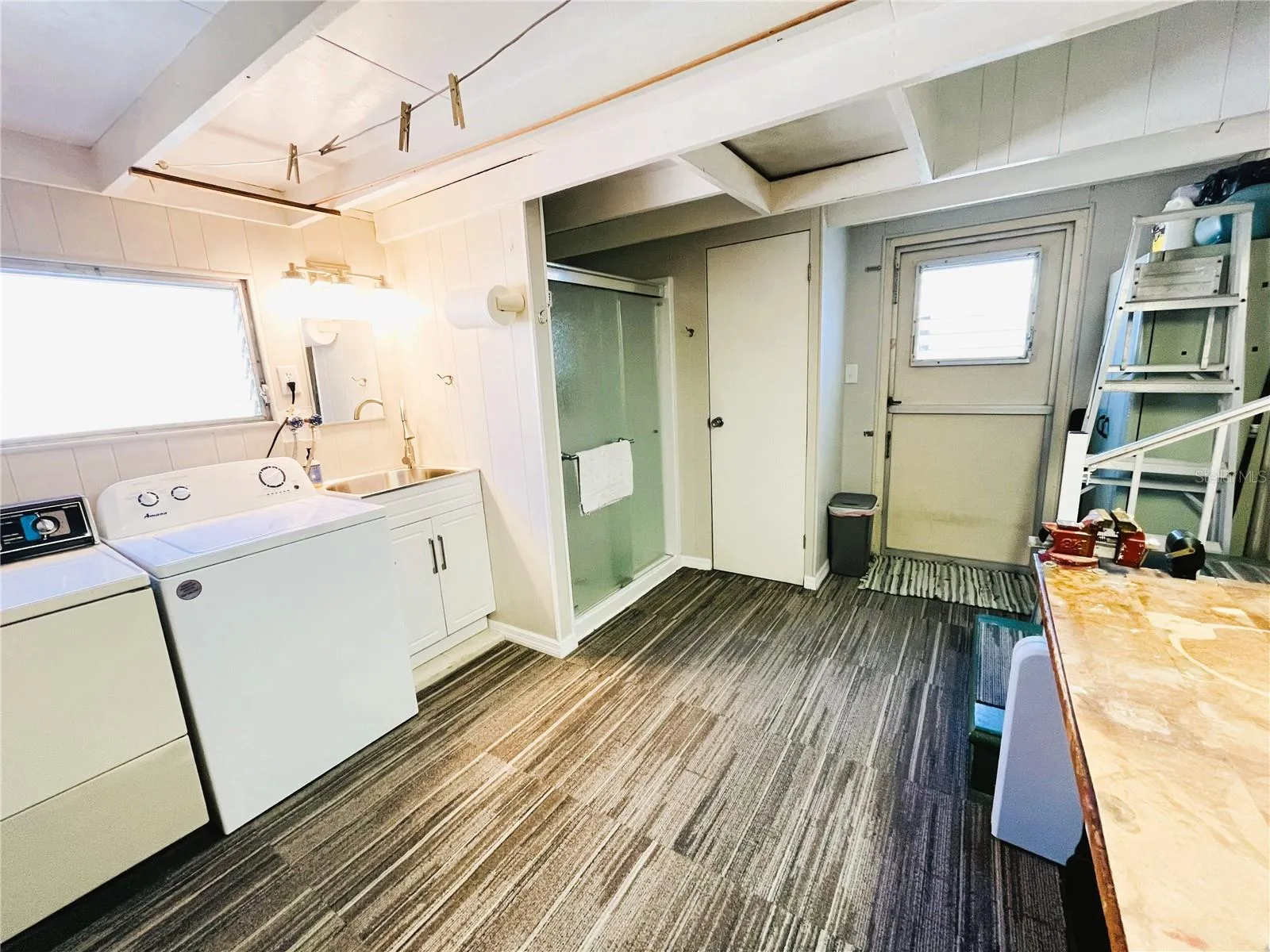 Elevated, expanded, and filled with light. This 2-bedroom, 2-bath home combines the advantage of elevated construction with a modern open floor plan. Sweeping hurricane-impact windows span the front and side of the home, flooding the space with natural light and enhancing the bright, airy feel. Interior finishes blend luxury vinyl flooring, drywall, and shiplap accents for a clean coastal aesthetic. The kitchen features deep cabinetry, newer appliances, and abundant storage designed for everyday functionality. A generously sized flex space adds exceptional versatility and includes a full second bathroom with a new shower unit and sink, along with dedicated storage and workshop areas. Above, full attic storage extends across the entire 11 x 14 flex space—an outstanding bonus for organization and seasonal use.