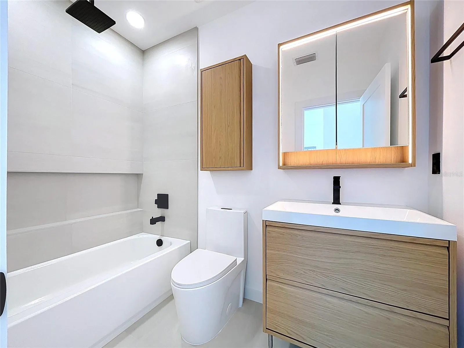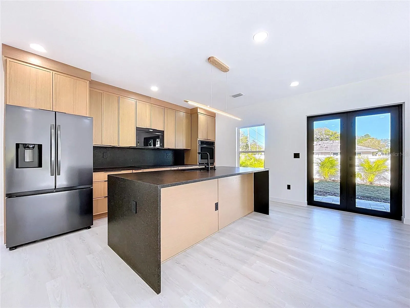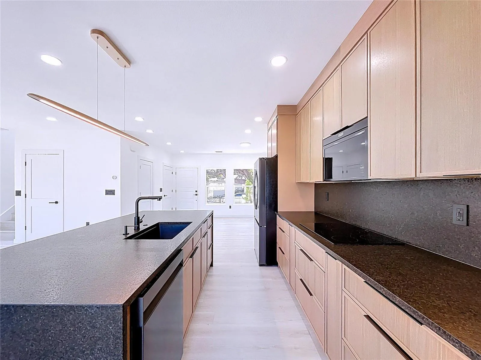 Kitchen has a modern and clean feel. There are solid wood soft closing cabinets up to the ceiling and a lot of comfortable to use drawers with plenty of storage and motion activated under cabinets lights. New generation microwave is built in flush with cabinets, built-in wall oven with induction cooktop, which keeps kitchen looking neat. Everything is set up for convenience, not just for show. All appliances and ventless washer/dryer combo come with 5 years warranty.