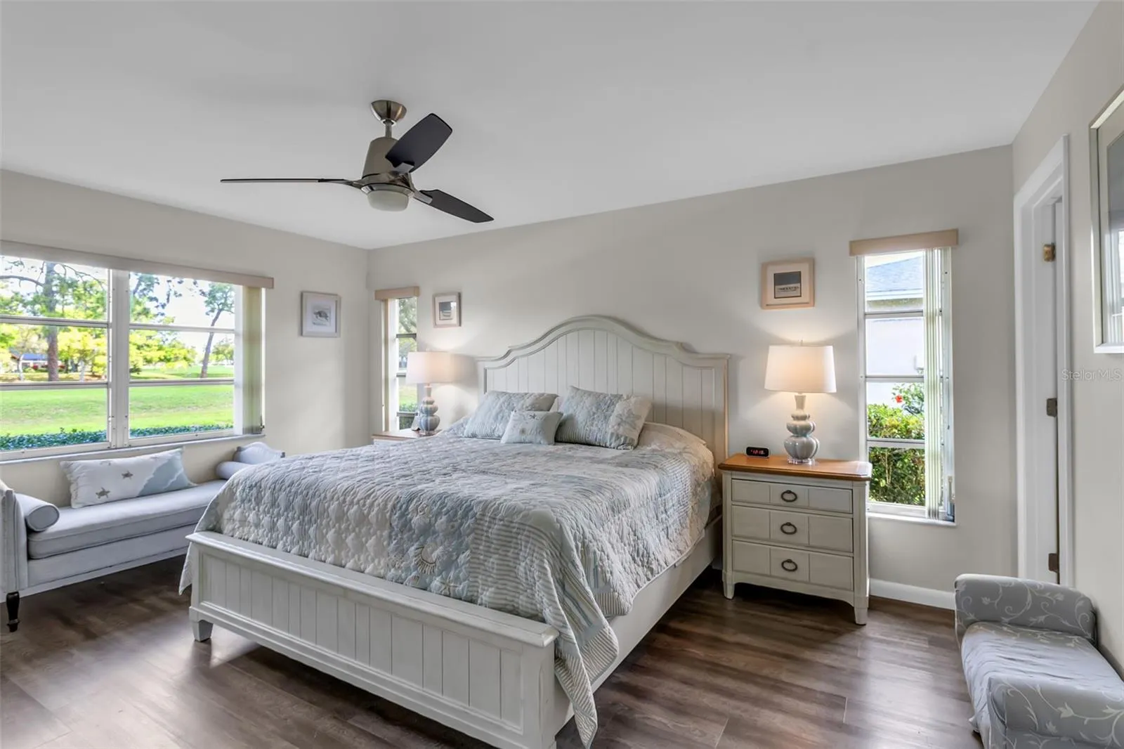 A remodeled Florida Room with hurricane impact windows serves as an ideal bonus space for dining, relaxing, card playing or entertaining while enjoying tranquil lake and nature views.