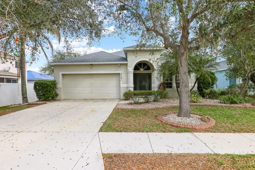 Welcome to this beautifully maintained home in Covered Bridge Estates, located in Ellenton, FL. Offering 2,035 sq. ft. of thoughtfully designed living space, this 3-bedroom, bonus room, 2-bathroom home features luxury vinyl plank flooring throughout, installed in November 2023—no carpet. A large formal living and dining room combo provides an elegant space for entertaining, while the open-concept kitchen is a chef’s delight, complete with white cabinets, a spacious island, stone countertops, and a full appliance package. Overlooking the dinette and family room, the kitchen offers seamless access to the screened-in lanai and fenced backyard—perfect for indoor-outdoor living. A built-in desk/home management center adds convenience to your daily routine. The huge primary bedroom is a true retreat, featuring a flex space/sitting area, currently used as a nursery, a large walk-in closet with custom built-ins, and an en suite bathroom with a dual sink vanity, oversized walk-in shower, and a separate garden tub for relaxation. The split floor plan ensures privacy, with two additional bedrooms sharing a second full bathroom. A dedicated laundry room completes the home’s functional layout. ! Major updates include a brand-new roof (December 2024), new water heater (2025), and a newer HVAC system (2020) for peace of mind. Located in the desirable Covered Bridge Estates community, this home offers access to fantastic amenities and a prime location near shopping, dining, and major roadways.