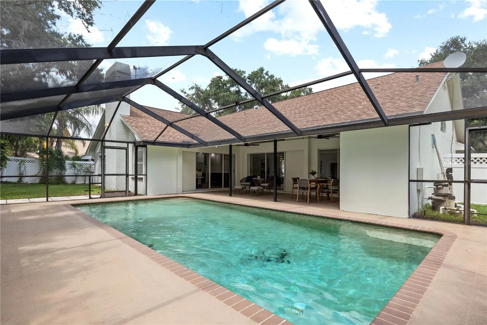 Welcome to the sought after Asbury in the heart of Tampa Palms. This 4 bedroom 3 bath house has an abundance of space in a elegant, quite neighborhood. This home offers over 2300 square feet of modern finishes with a 2020 ROOF, 2022 HVAC, and a newer hot water heater. This home comes equipped with a flowing open floorplan and multiple sliding glass door exits to your backyard oasis. Invite your friends and family over to cook out on the expansive screen enclosed pool deck or take a swim on a hot day. Or if you prefer take short one mile ride to the Tampa Palms Country Club enjoy a round of golf, pickleball, tennis, and their pool. This house offers a contemporary kitchen with brand a brand new Samsung range, microwave, dishwasher, and a newer refrigerator. The kitchen provides expansive quartz counter tops and an abundance of cabinet space. The master bathroom provides unique tile finishes and a walk-in shower as well as a free standing tub. This bathroom is quite large for this house and has a large double sink vanity that has a matching quartz top and smart mirrors. The house has newer Luxury Vinyl Floors, contemporary lighting and plumbing fixtures throughout, and a fresh coat of paint on the inside and out. Your new home will also come with a fire place and a spacious two car garage with utility sink, and an indoor laundry room. This home is in a prime location and is only minutes to the interstate I75 and I275, offers access to top rated schools, and has many amenities and gyms surrounding the area while still being in a fantastic, quiet neighborhood. Make this home yours while you can because homes in Asbury do not linger.
