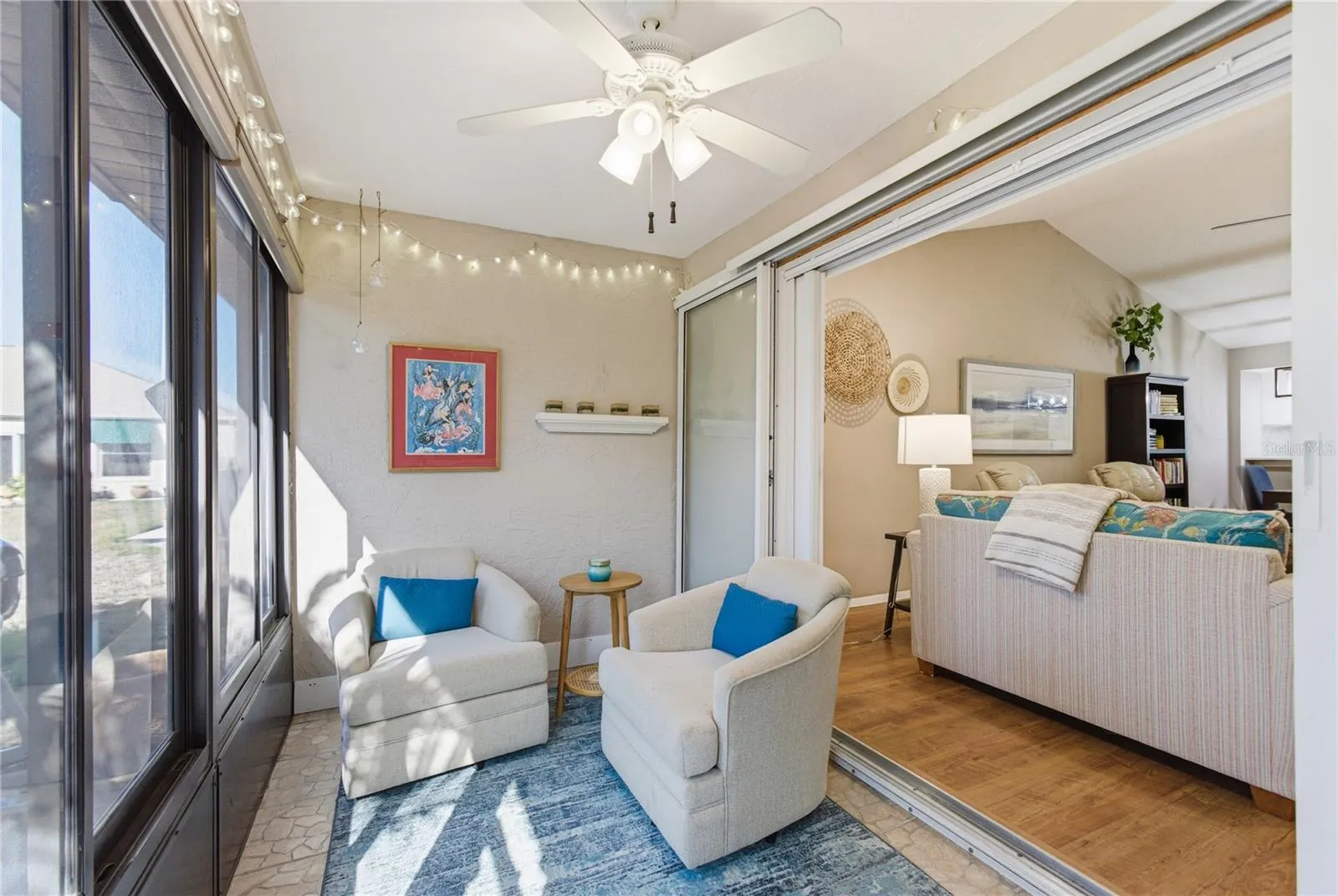 Welcome home to this charming, turnkey-furnished villa in the highly desirable Cordova Villas community. From the moment you step inside, you’ll appreciate the thoughtful updates and inviting atmosphere throughout. The beautifully remodeled kitchen is a standout, featuring sleek quartz countertops, stainless steel appliances, and a convenient laundry closet with a full-size washer and dryer, plus a tankless water heater for added efficiency. The open dining and living area is enhanced by soaring ceilings, creating a bright and airy space perfect for both relaxing and entertaining. Each bedroom offers its own private ensuite bath, providing comfort and privacy for both owners and guests. Unwind in the cozy lanai with your morning coffee and a good book, or enjoy outdoor living with a rear paver patio ideal for grilling and relaxing, along with a welcoming front porch for even more space to soak in the Florida lifestyle. Cordova Villas offers exceptional amenities, including a large community pool, deeded carport, cable TV/internet, water, sewer, trash, exterior maintenance, and pest control all included for easy, low-maintenance living. Conveniently located near shopping, medical facilities, GT Bray Park, and just a short drive to the beautiful beaches of Anna Maria Island, this villa truly offers the best of comfort, convenience, and coastal charm.