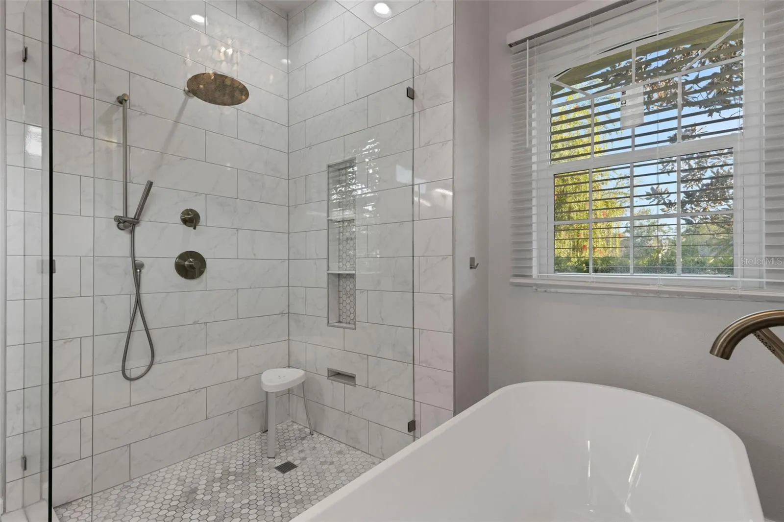 The welcoming foyer is flanked by a home office (with a custom home office cabinetry) & formal dining room & opens to the living room that lead to the expansive outdoor living area. This home offers an expansive Master suite with a newly renovated Master Bathroom with walk-in shower and freestanding bathtub, all appointed with luxurious hardware and neutral tile. 2 large guest bedrooms share an updated bathroom, and the 4th bedroom has also a beautiful updated in suite bathroom that can be used as a pool bathroom. All areas of the house have ceramic or real wood flooring. Some of the windows were updated to hurricane windows or they have shutter protection.