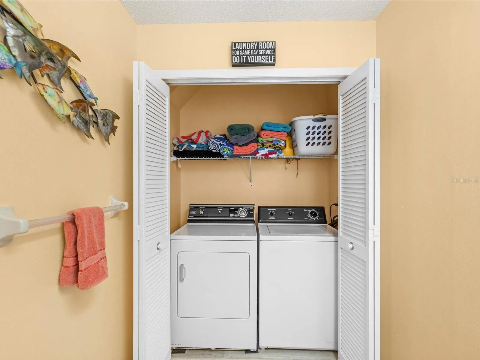 The open living and dining areas provide a welcoming environment for everyday living or entertaining, with sliding glass doors leading to a covered patio with great green space view—perfect for enjoying Florida’s indoor-outdoor lifestyle. The home also features an inside laundry area, along with ample storage throughout, including additional storage options beyond the garage.