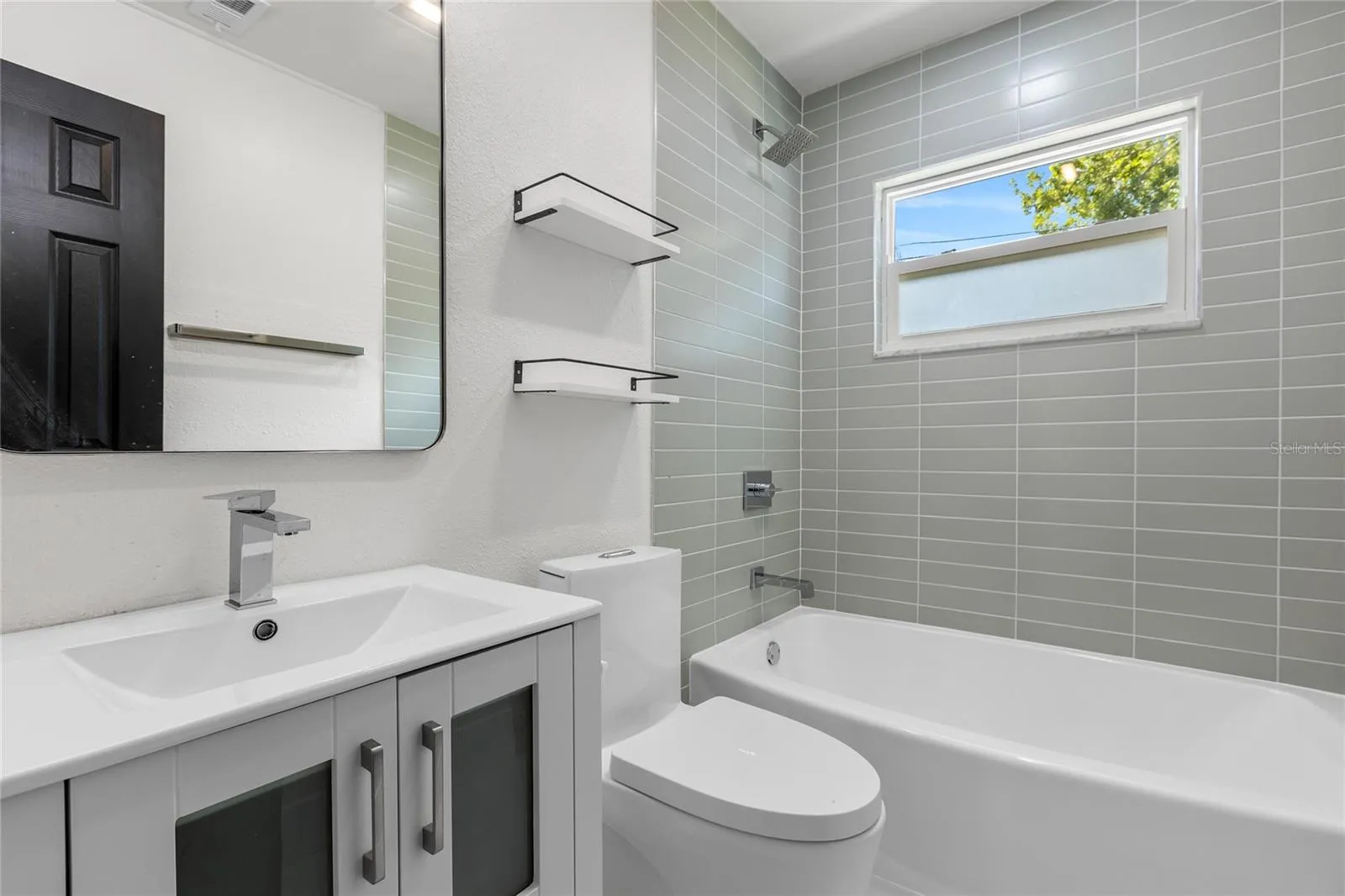 The bathrooms have been fully updated with new fixtures, including a touch screen LED mirror, a new glass shower, and modern canless square ultra-thin LED recessed lighting that creates a warm and welcoming ambiance.