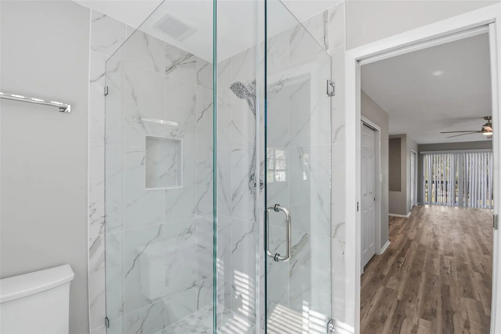 Upstairs, the primary suite is a true retreat—bright and expansive with dual closets and a beautifully designed ensuite featuring a double vanity, lighted mirror, and a glass walk-in shower. Enjoy your morning coffee or unwind in the evening from your private balcony with peaceful water views of Tampa Bay.