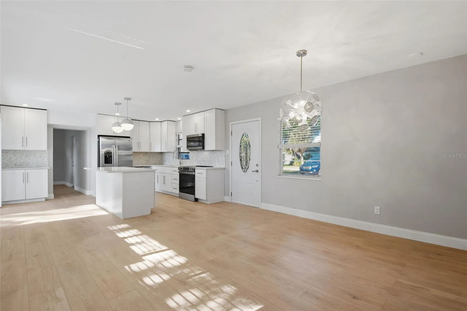 Inside, you’ll find modern finishes throughout, including high-end luxury vinyl plank flooring and fresh interior and exterior paint. The updated kitchen features a large center island and stainless-steel appliances, perfect for everyday living and entertaining.